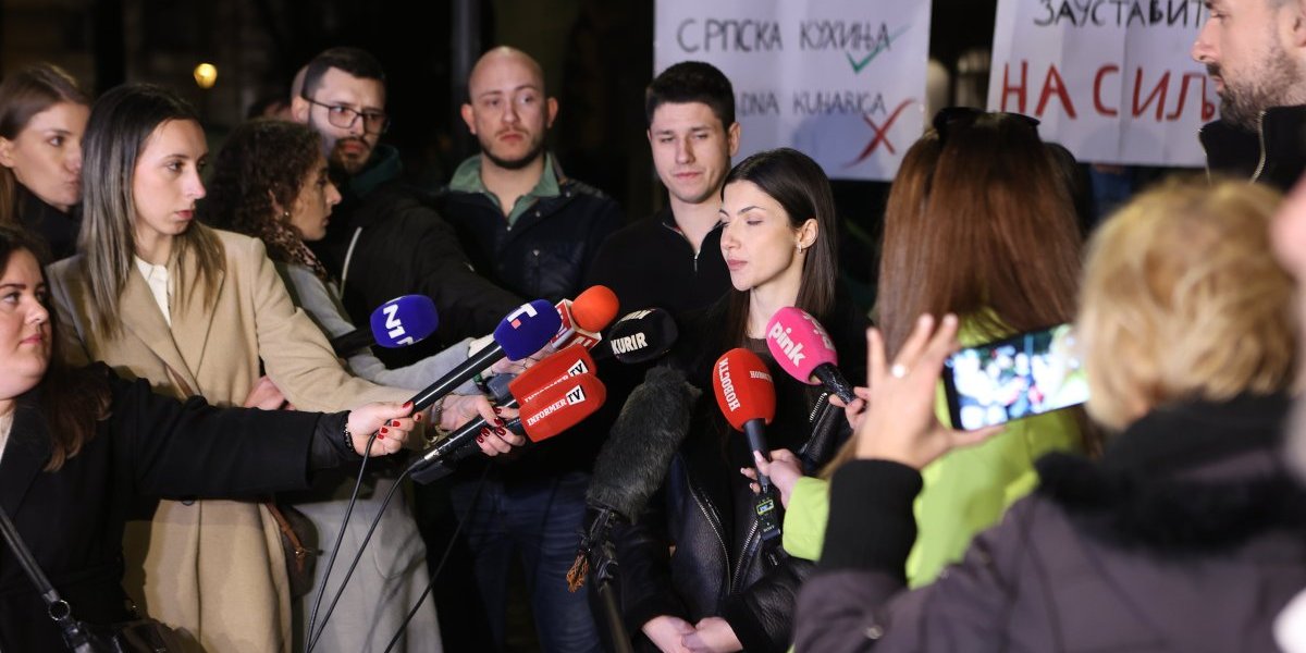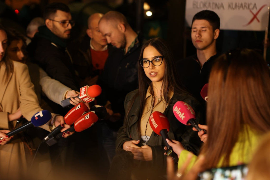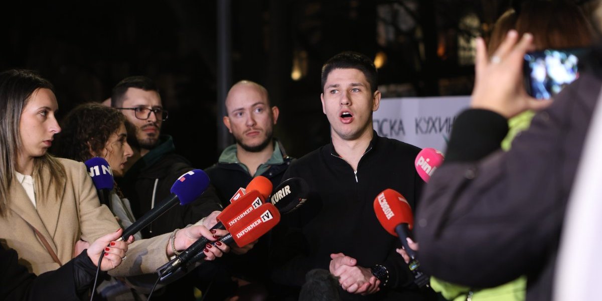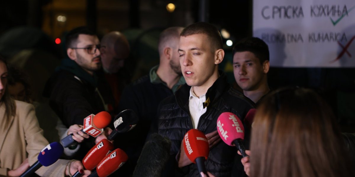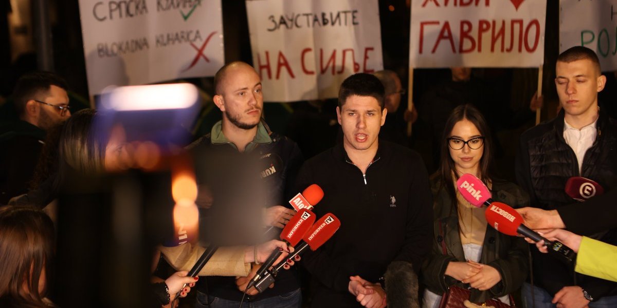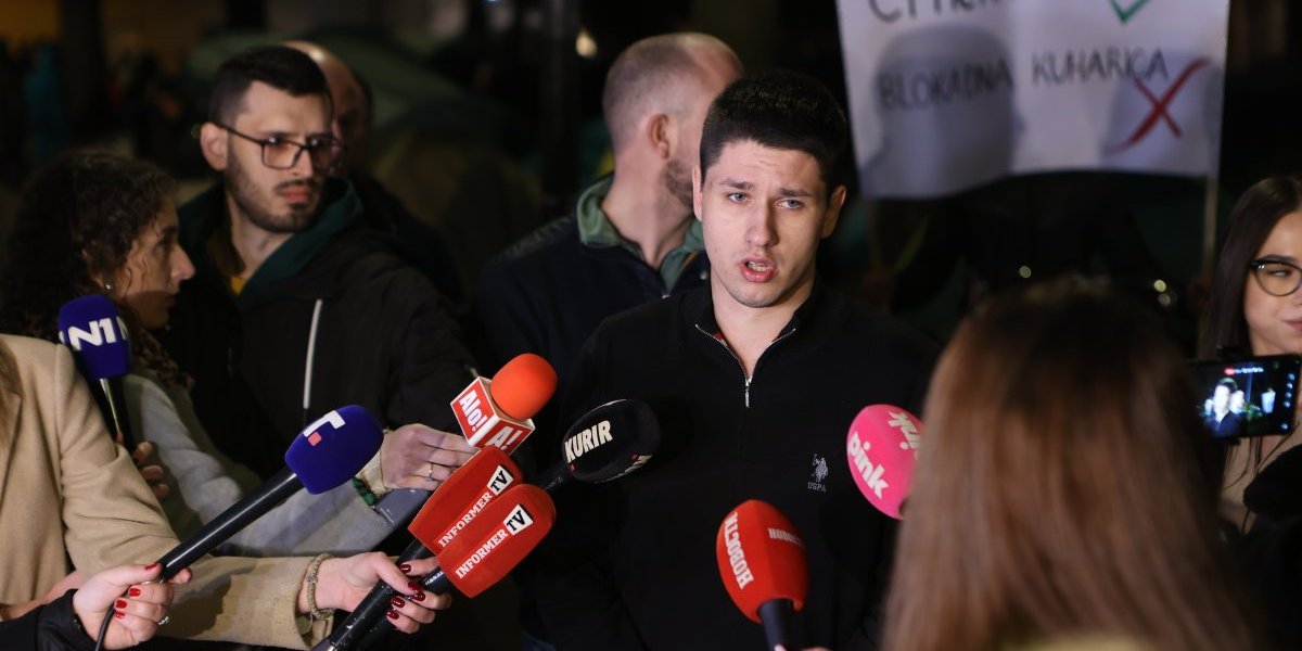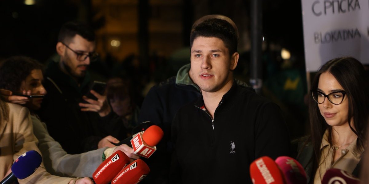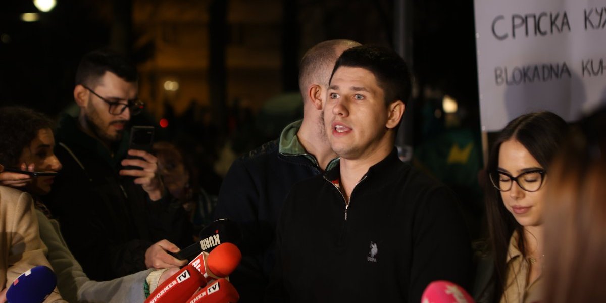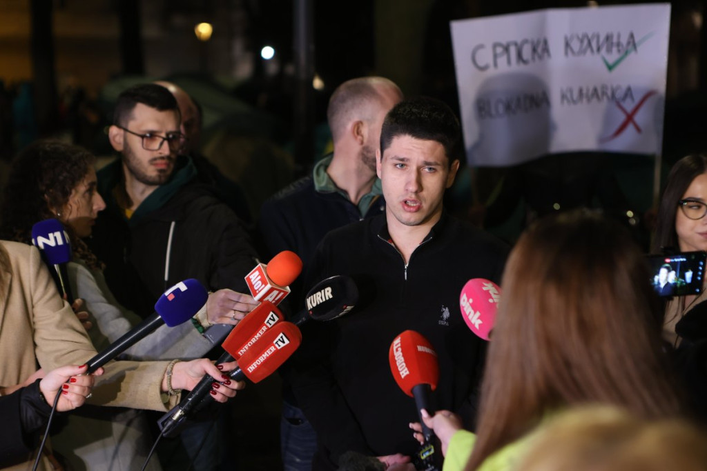 - Dobro veče svima, ja sam David Vuković, student FTN iz Novog Sada, ovde smo se okupili sa kolegama koji su došli iz raznih delova Srbije, čini mi se da najviše vidim svojih kolega iz Novog Sada. Naš prvi zahtev, a ujedno i najvažniji je početak nastave na fakultetima i svim visoko naučnim ustanovama do 10. marta, a najkasnije do 17.marta jer mi više vremena nemamo.