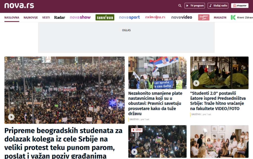 Čak su i hejterske televizije Nova S i N1 objavili vest i pozicionirali je na naslovnu stranu svojih sajtova, ali se zato RTS pravi mrtav!