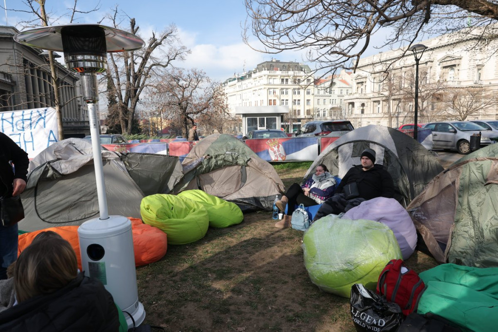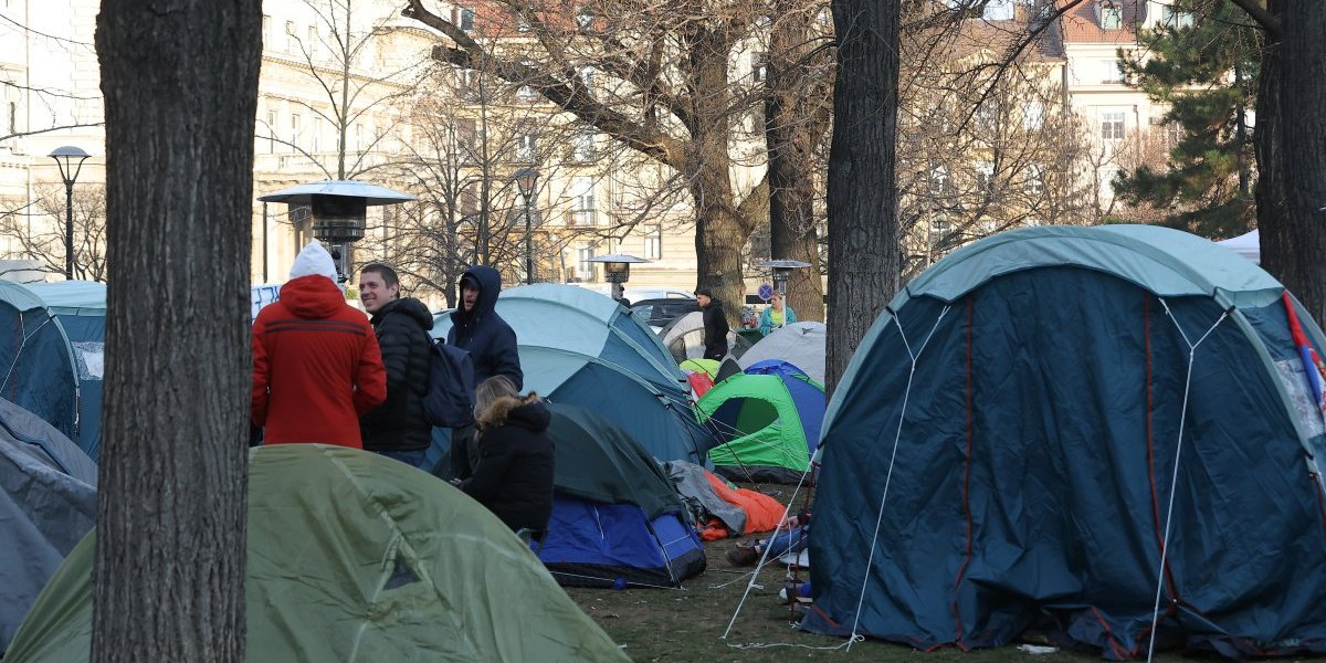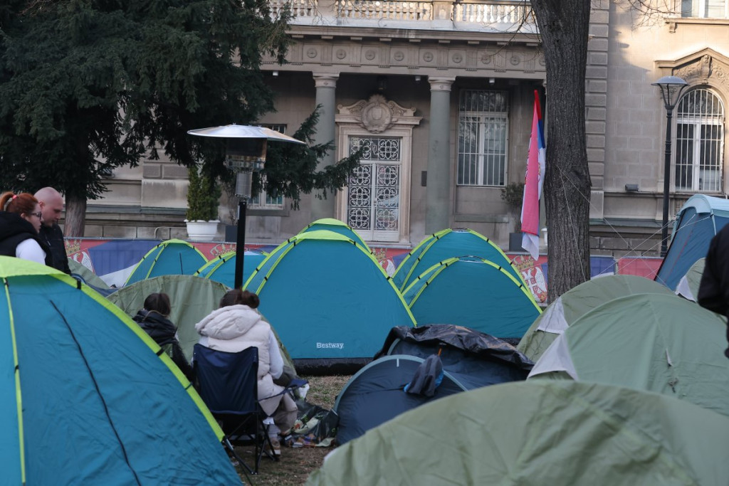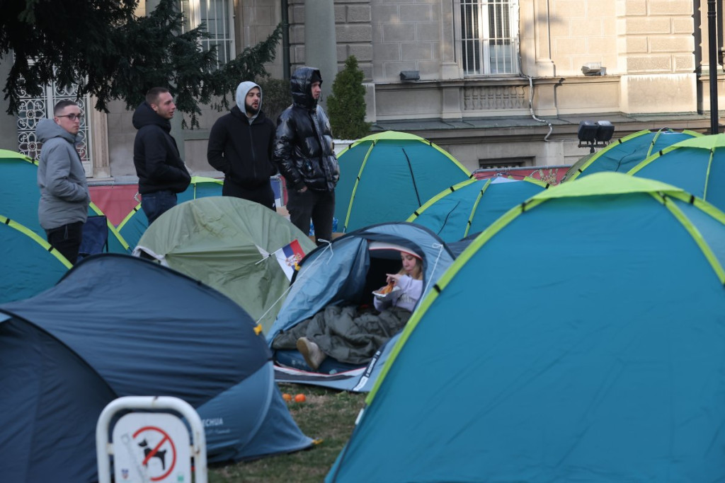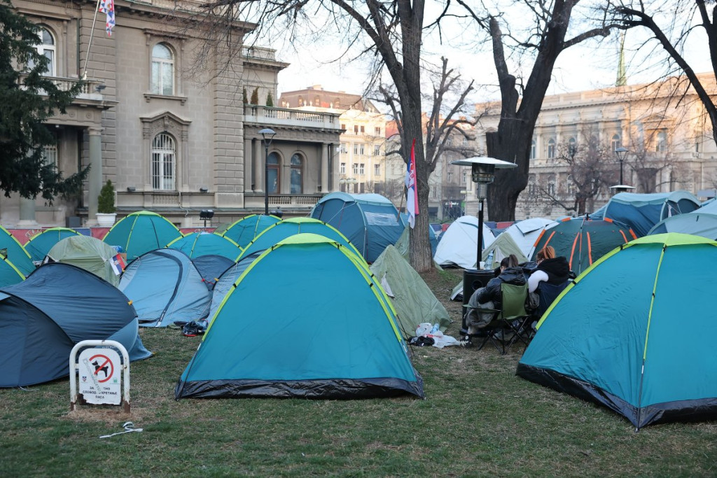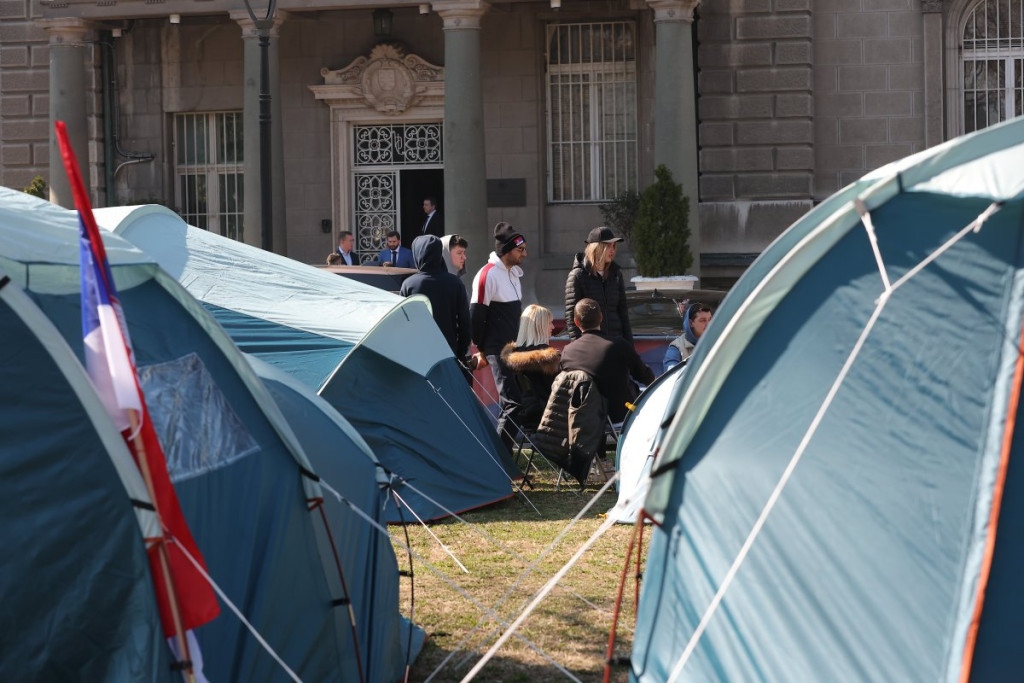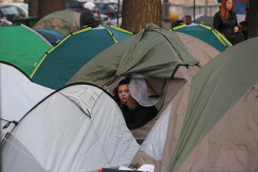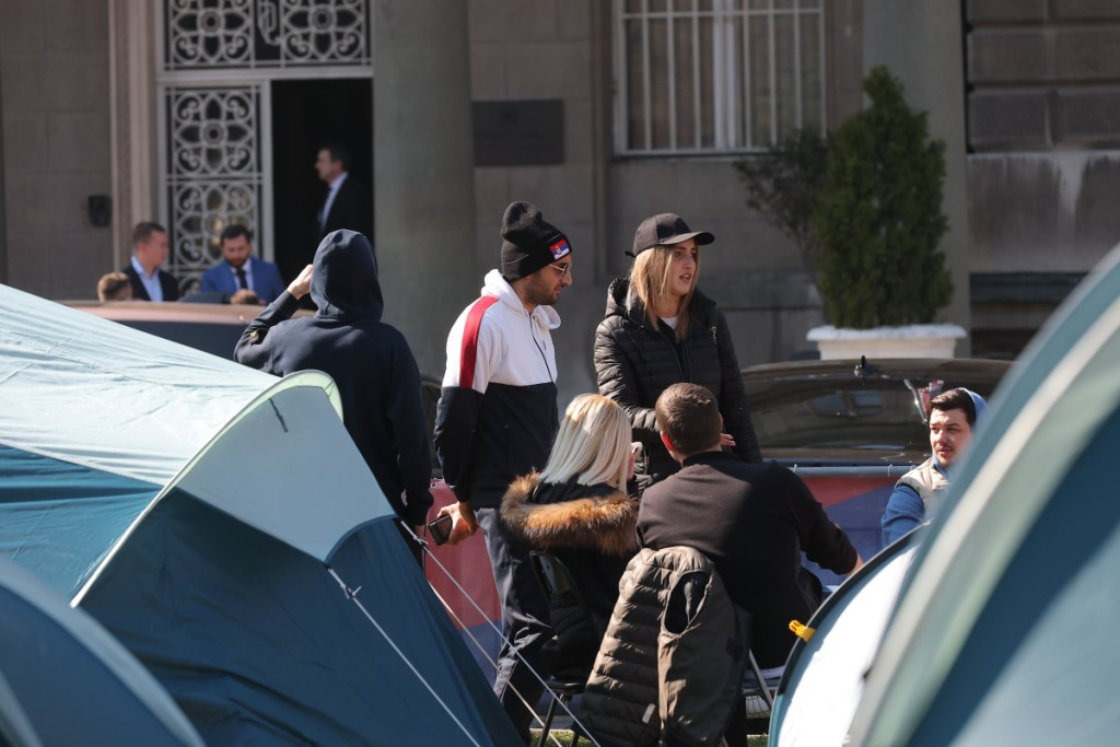 Studenti koji žele da uče okupili su se ispred Predsedništva. Oni su u četvrtak uveče postavili šatore u Pionirskom parku i neće otići dok se ne ispune njihovi zahtevi.