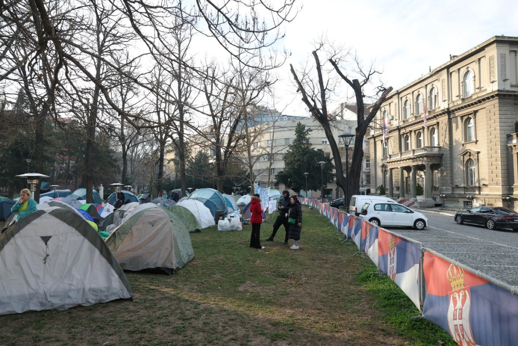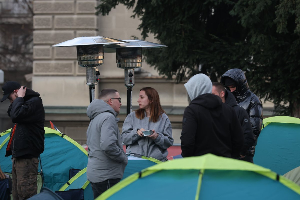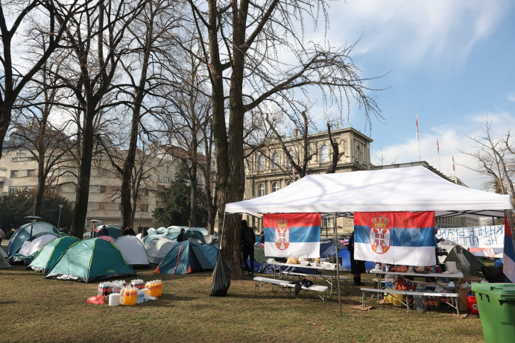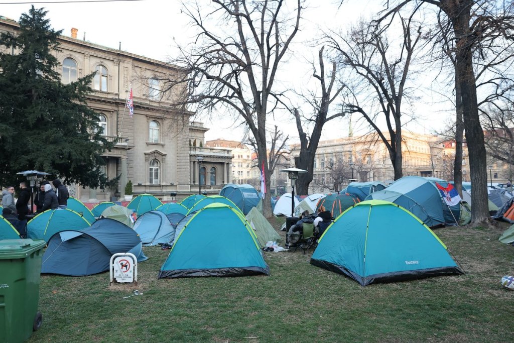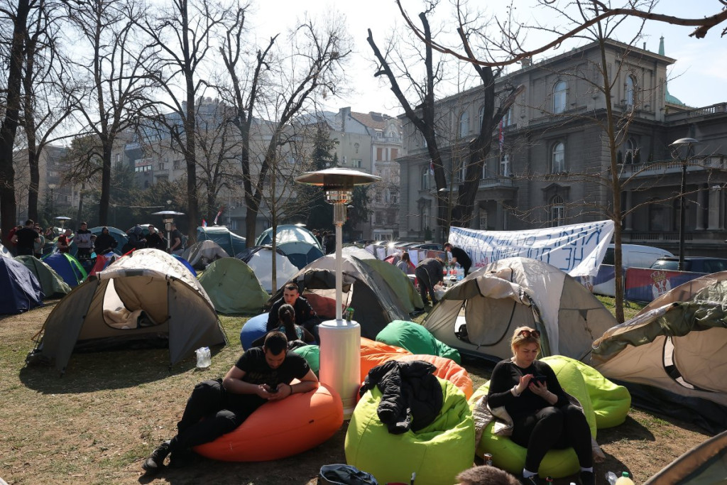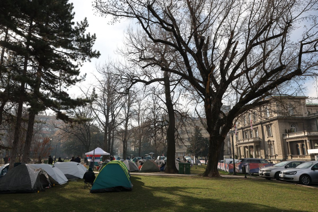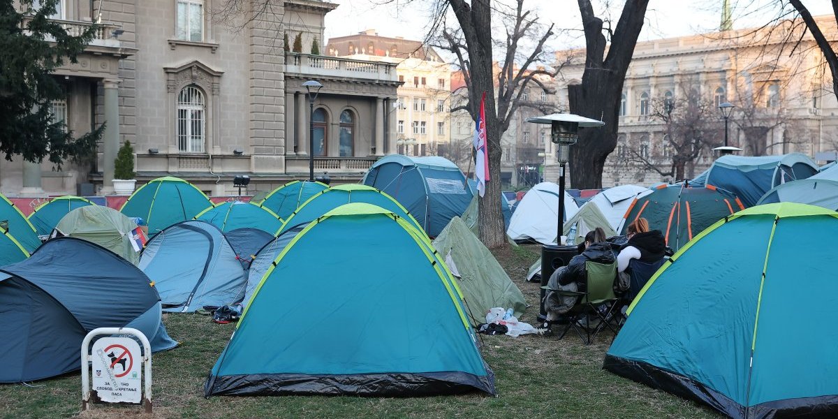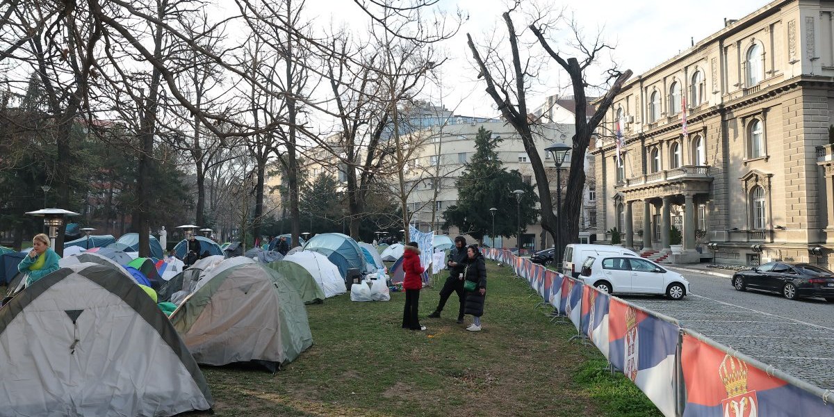 Studenti koji žele da uče okupili su se ispred Predsedništva. Oni su u četvrtak uveče postavili šatore u Pionirskom parku i neće otići dok se ne ispune njihovi zahtevi.