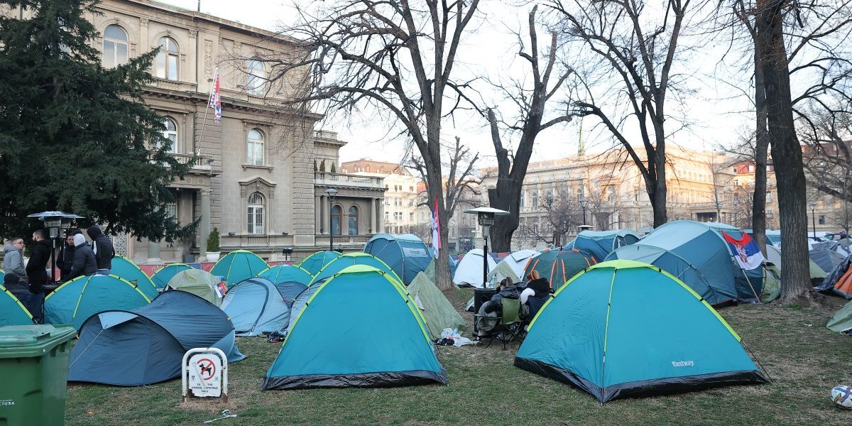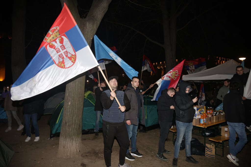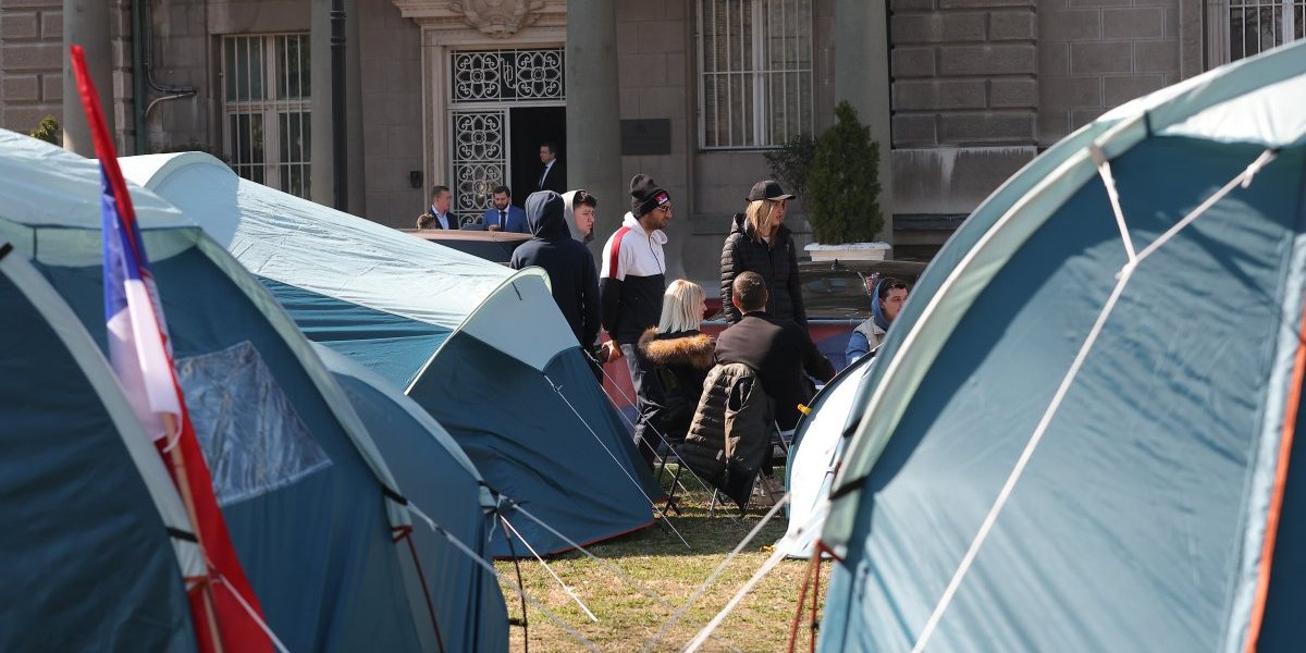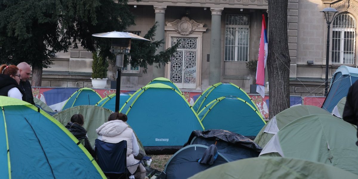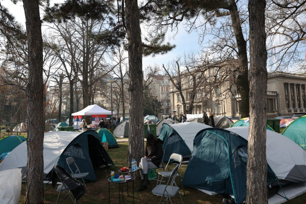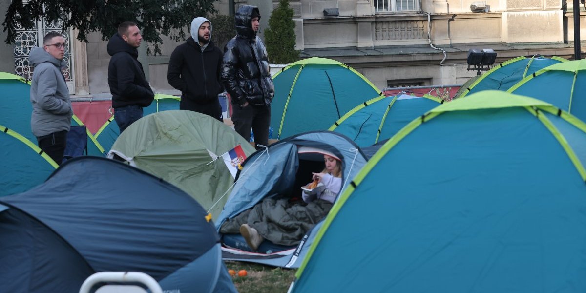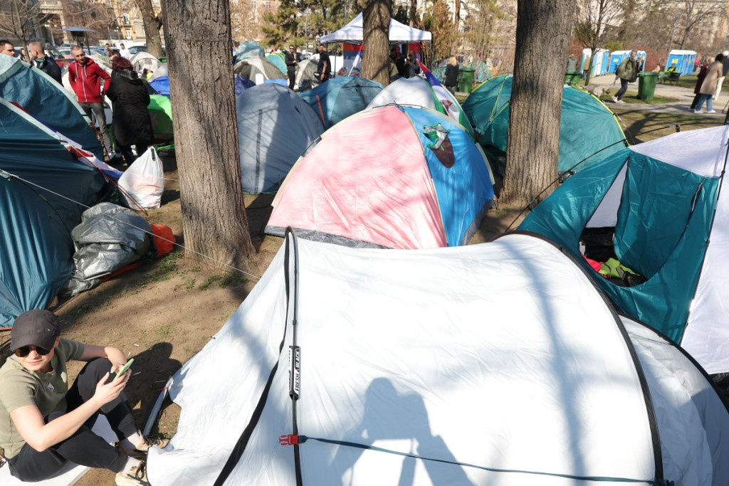 Studenti koji žele da uče okupili su se ispred Predsedništva. Oni su u četvrtak uveče postavili šatore u Pionirskom parku i neće otići dok se ne ispune njihovi zahtevi.