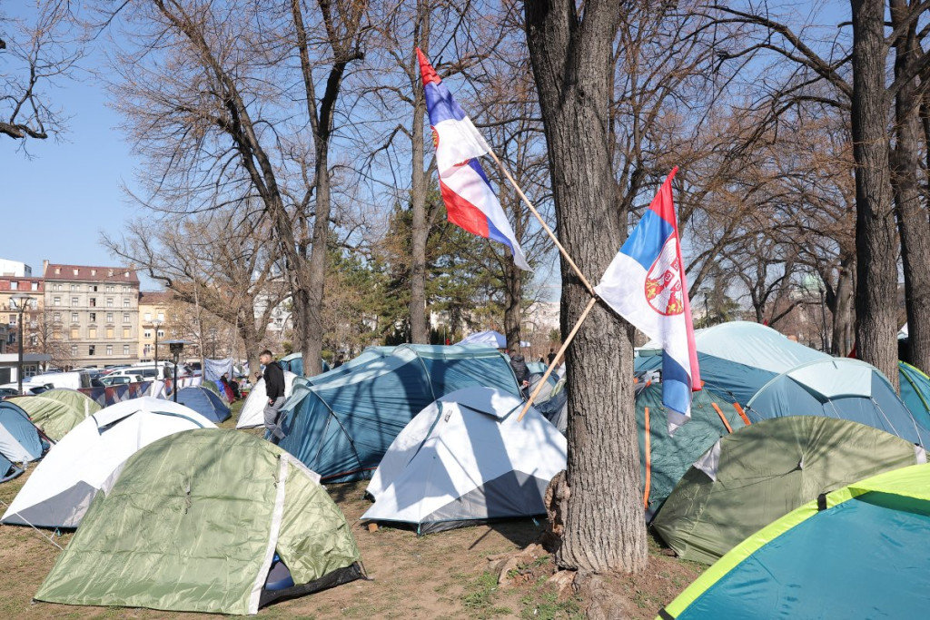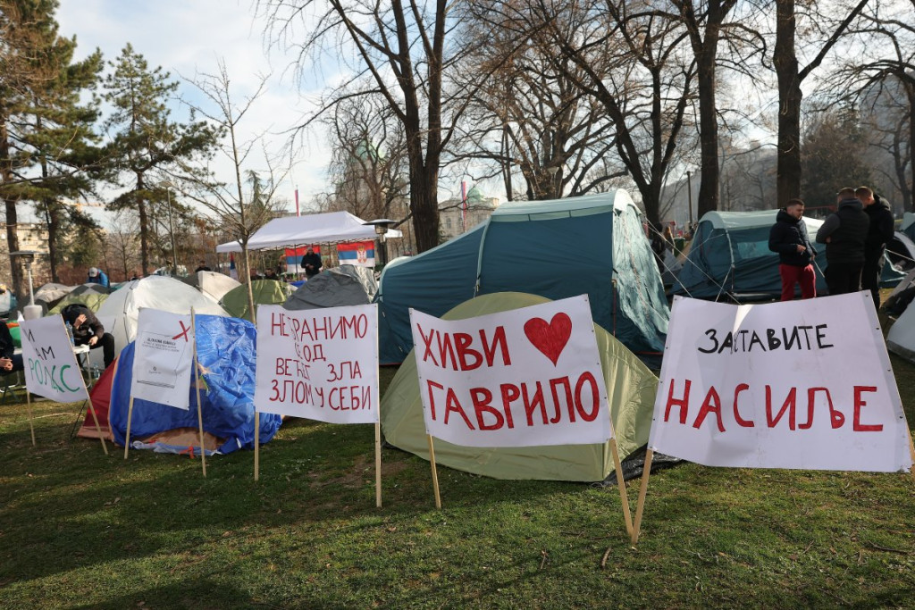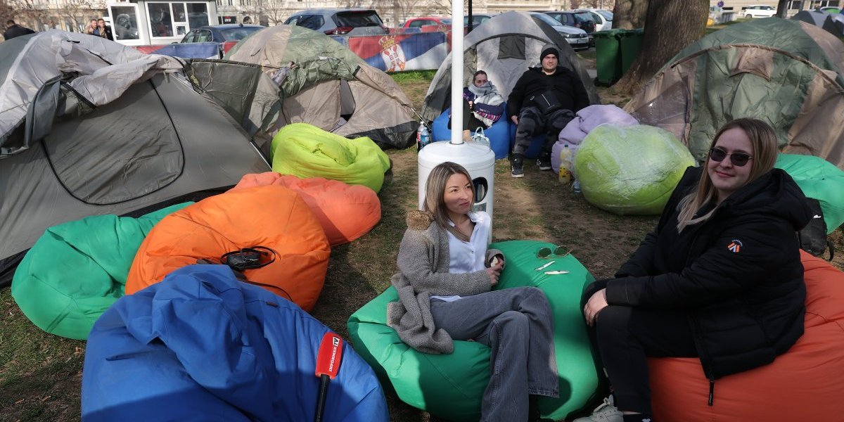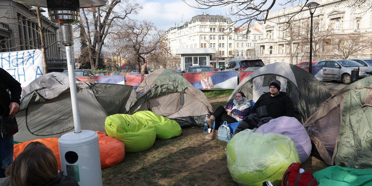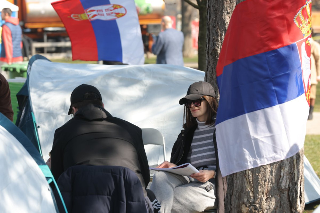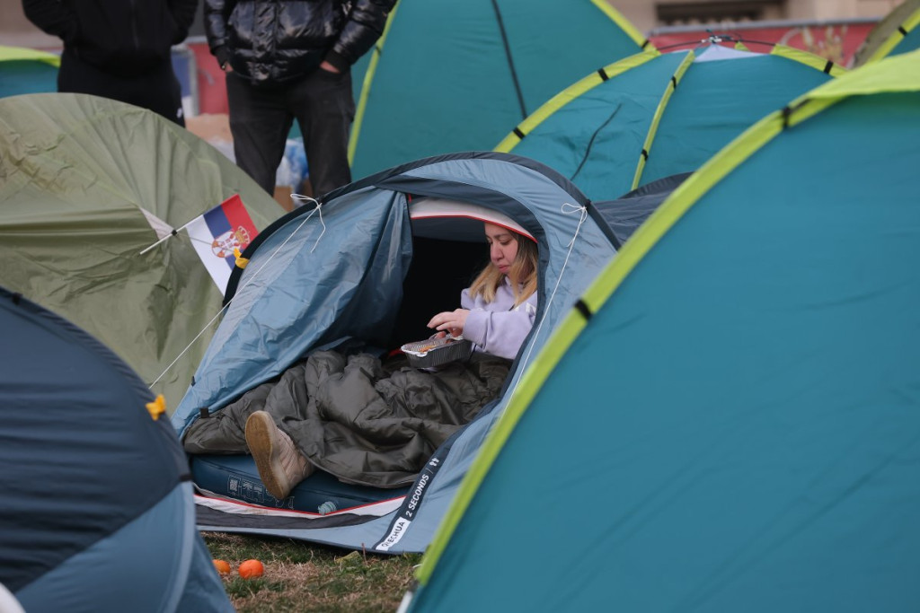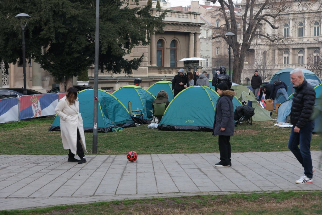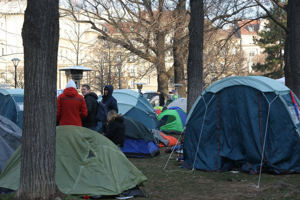 Studenti koji žele da uče okupili su se ispred Predsedništva. Oni su u četvrtak uveče postavili šatore u Pionirskom parku i neće otići dok se ne ispune njihovi zahtevi.