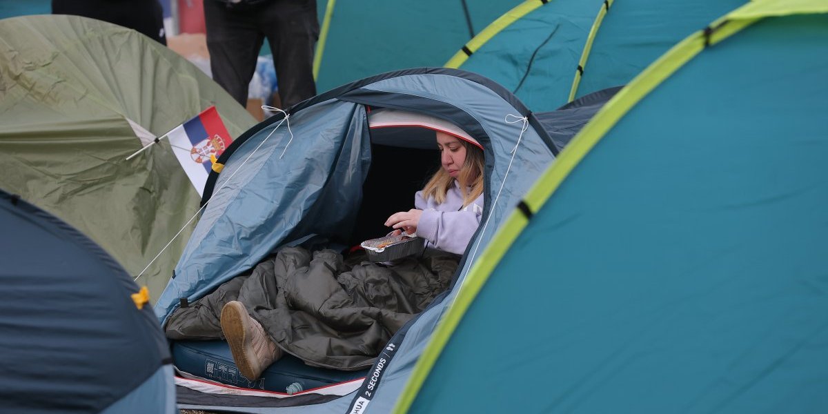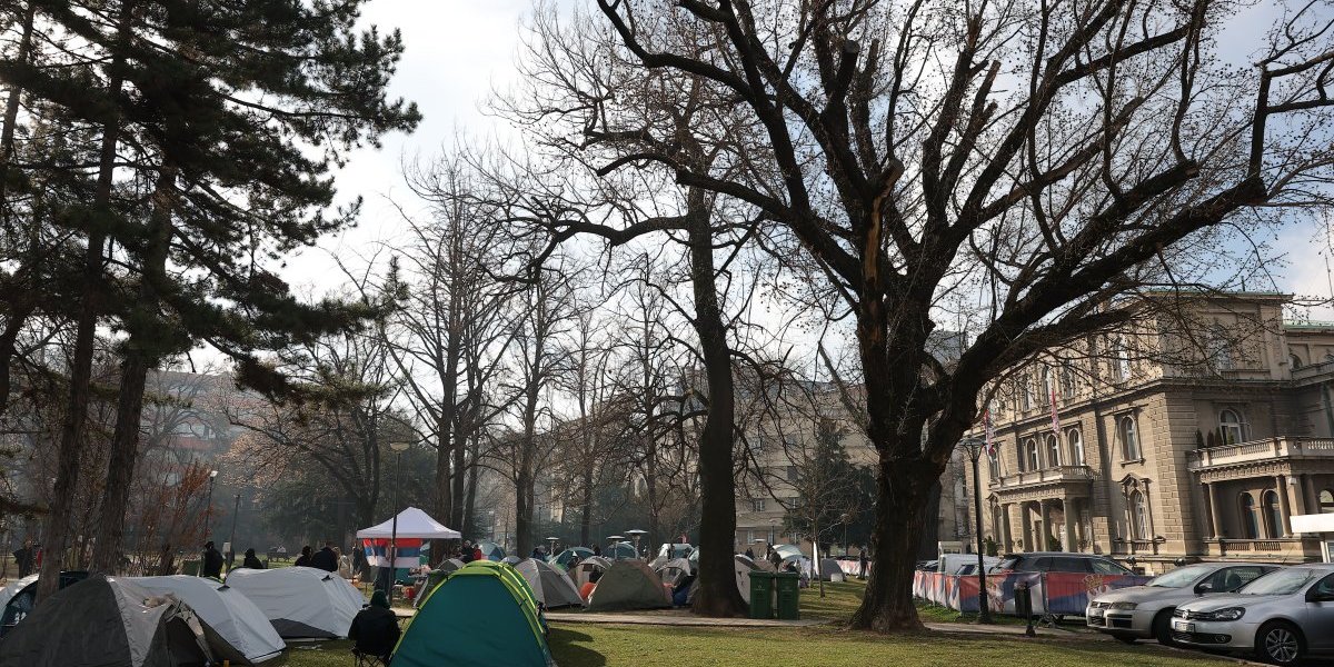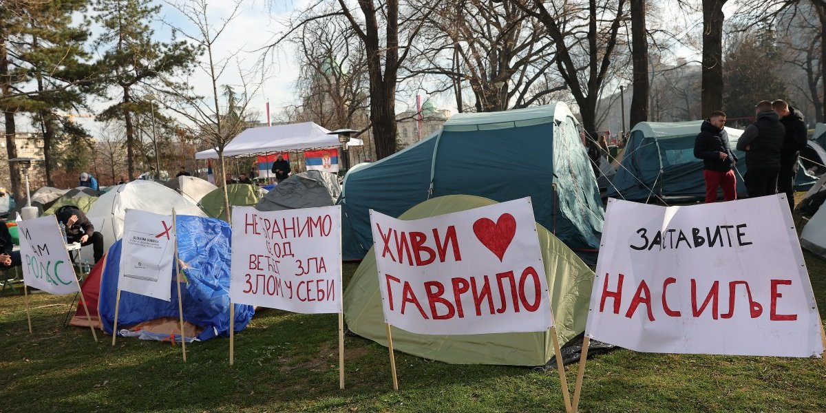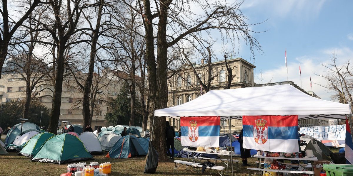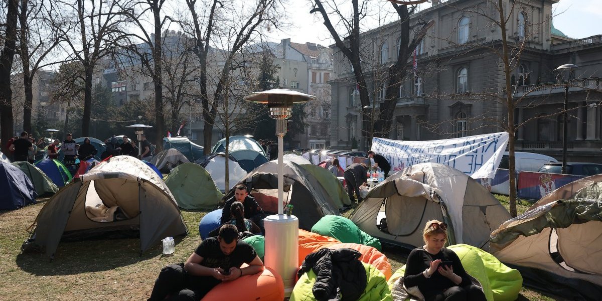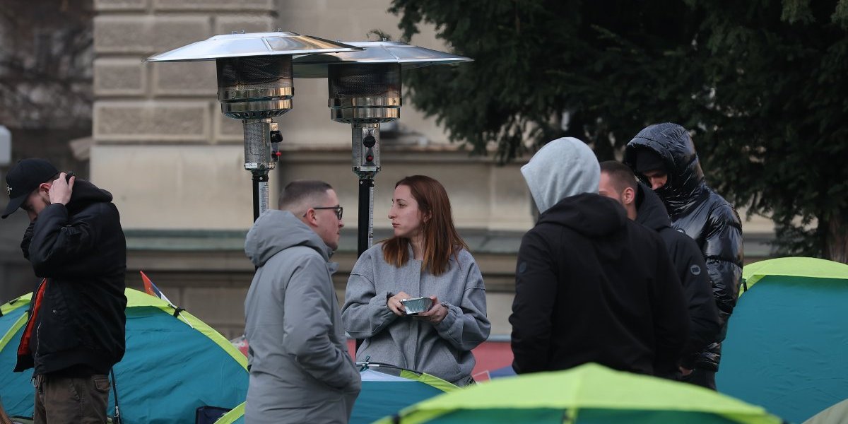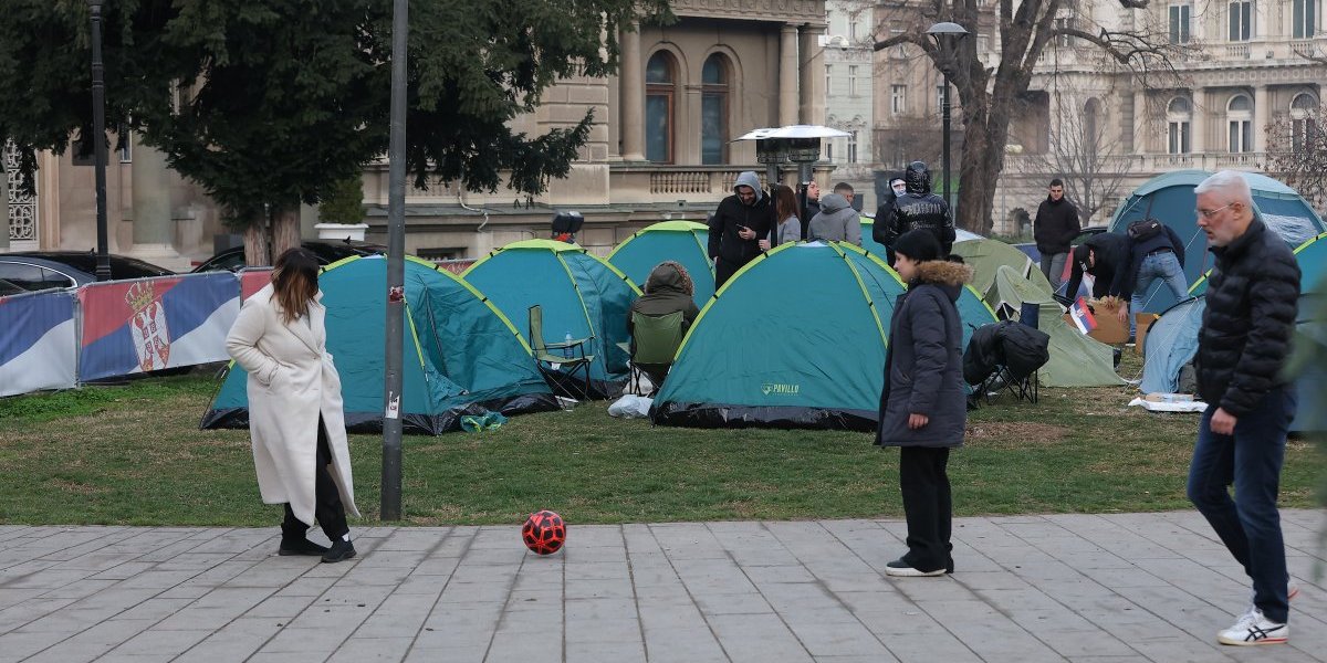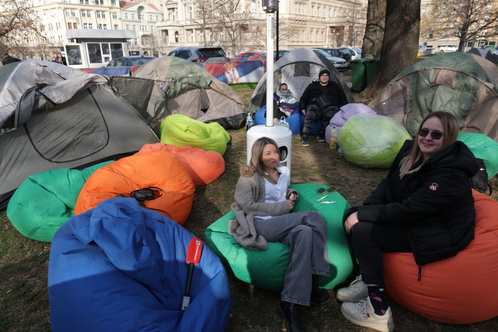Studenti koji žele da uče okupili su se ispred Predsedništva. Oni su u četvrtak uveče postavili šatore u Pionirskom parku i neće otići dok se ne ispune njihovi zahtevi.