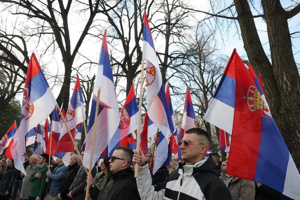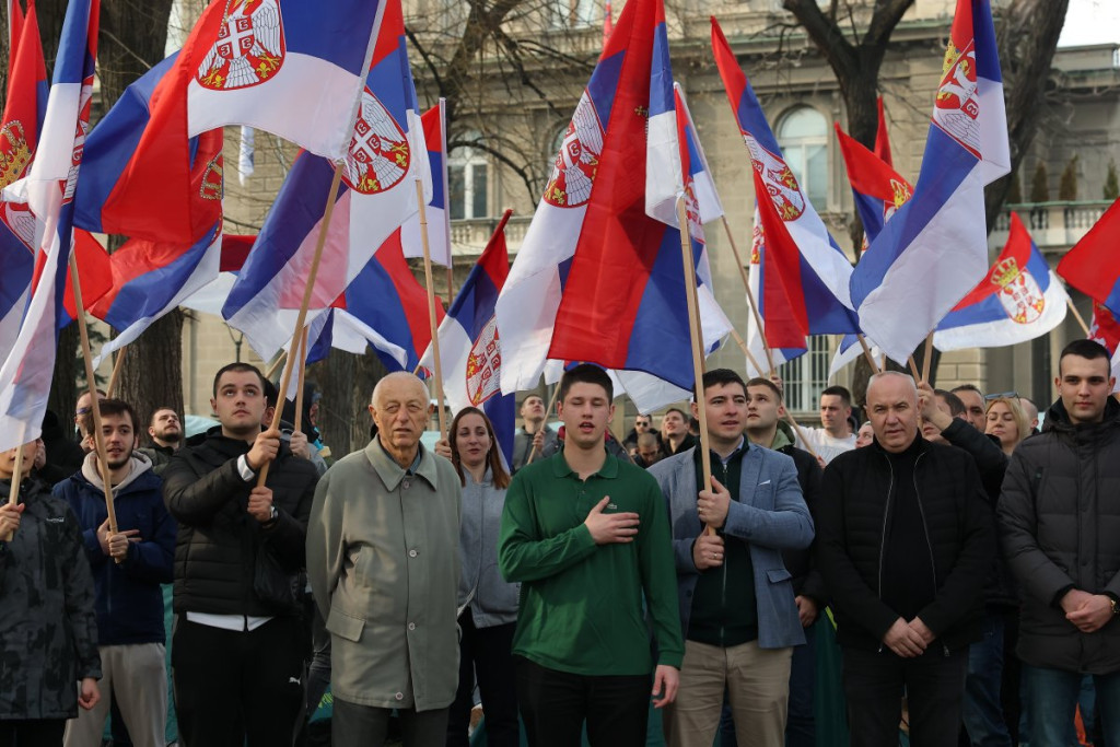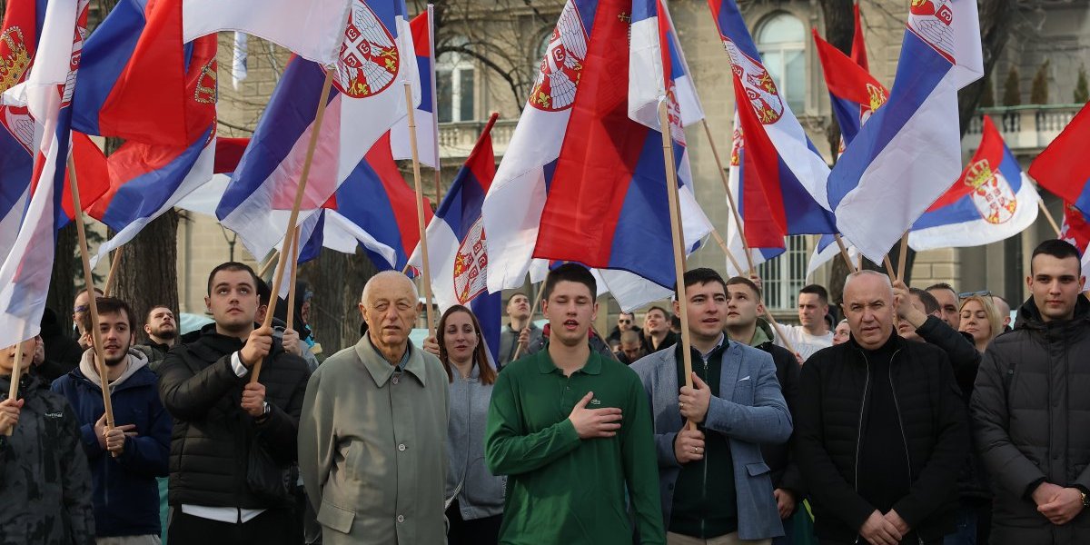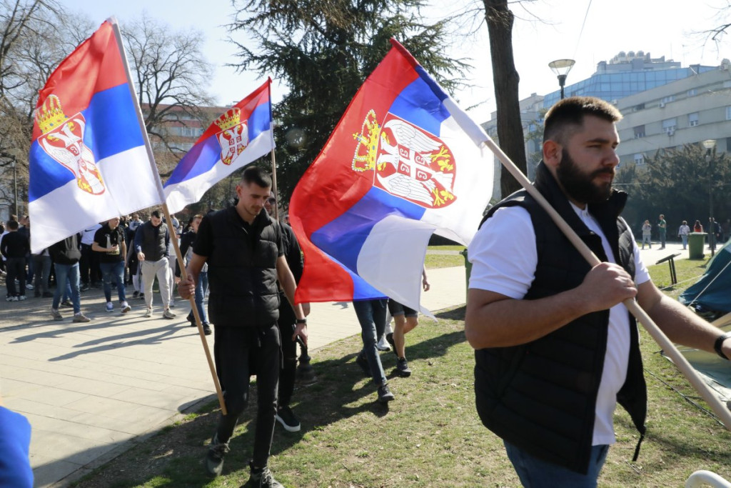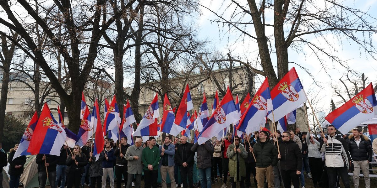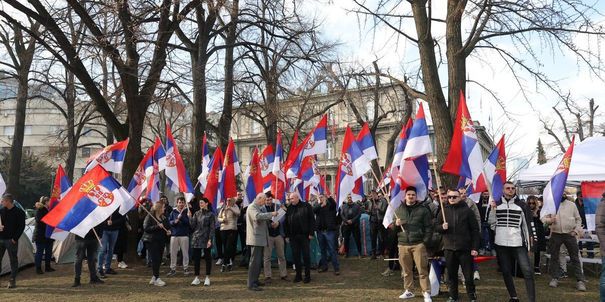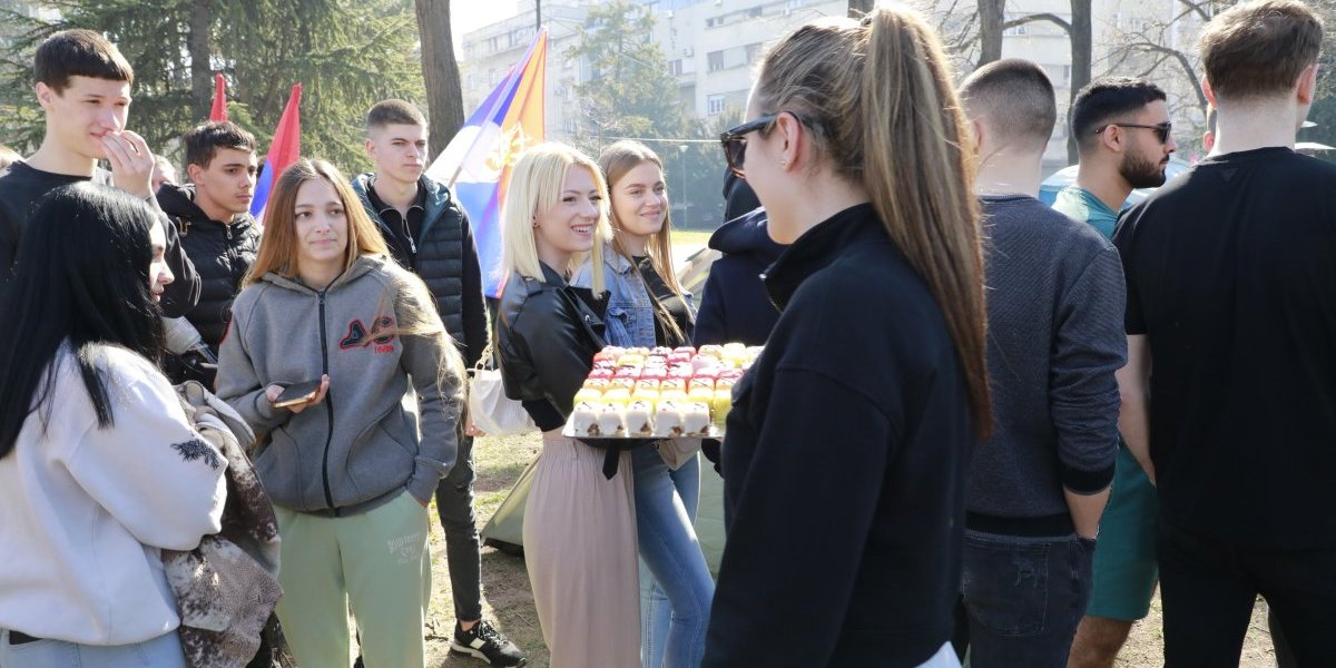 Studenti koji zahtevaju prekid blokade fakulteta okupili su se u četvrtak ispred Predsedništva. Nakon napada na studente koji žele da uče koji se nisu povukli pred neradnicima i zgubidanima, atmosfera u kampu je potpuno smirena. Oni pevaju "Veseli se srpski rode".