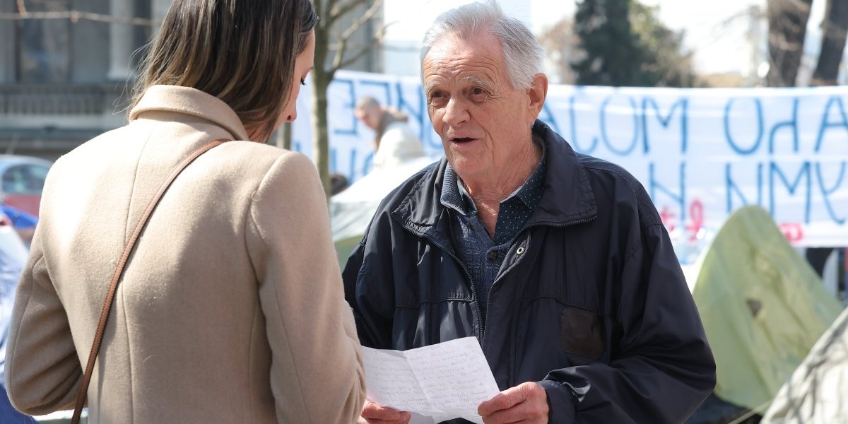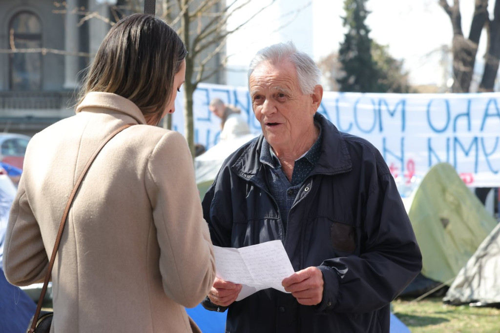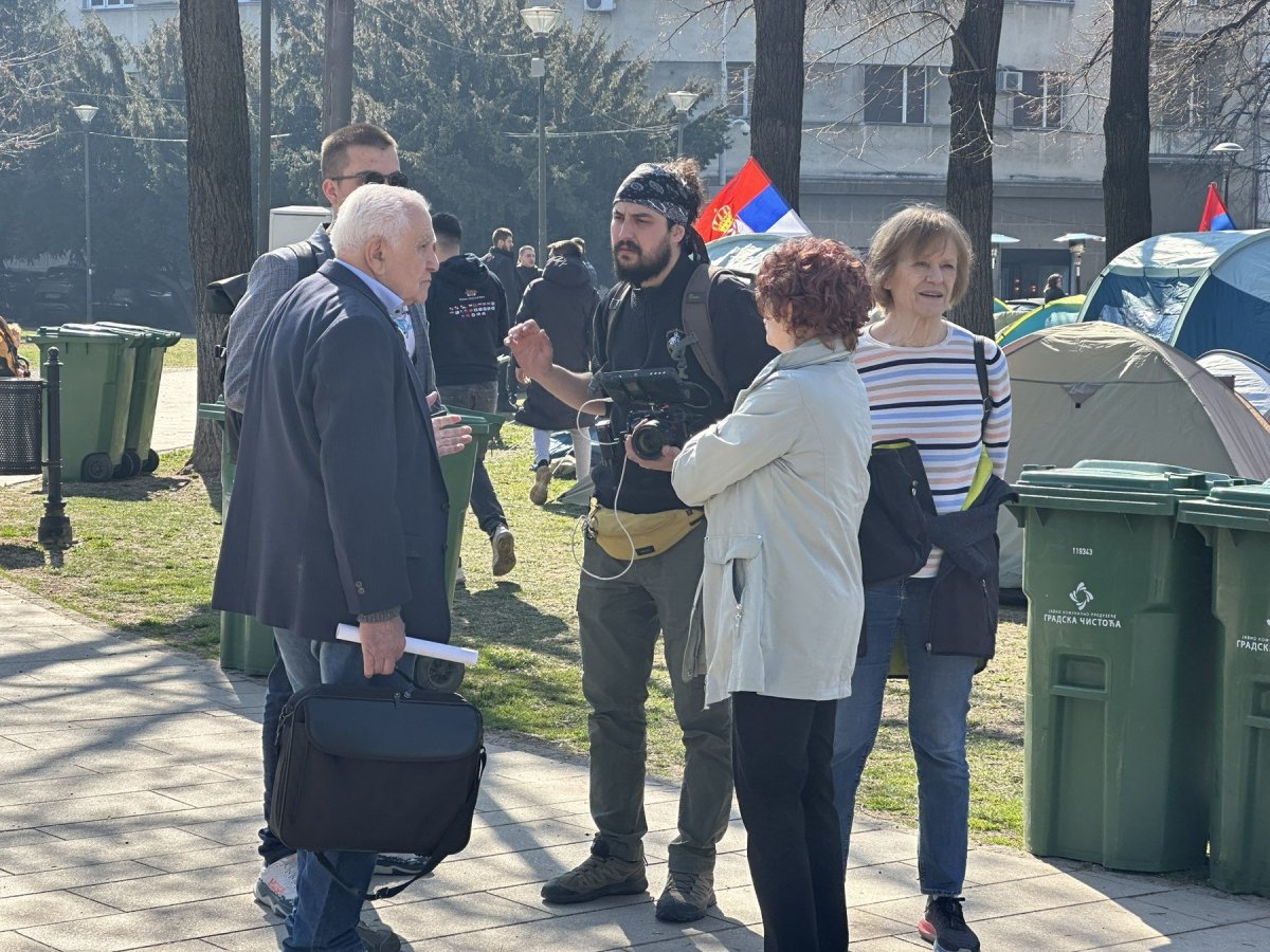 Slobodan Dragićević, diplomirani inženjer, podržao je studente koji hoće da uče i doneo im knjige. Kako je rekao, on ima iskustva sa studentima koji blokiraju još '68. kada ga je otac upozorio da hoće da ruše državu, i sada vidi da se takav pokušaj ponavlja.