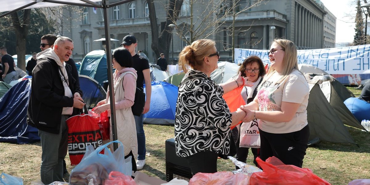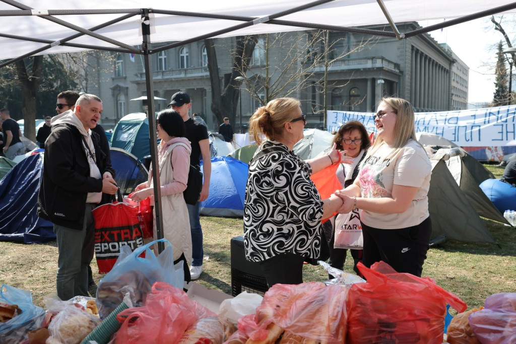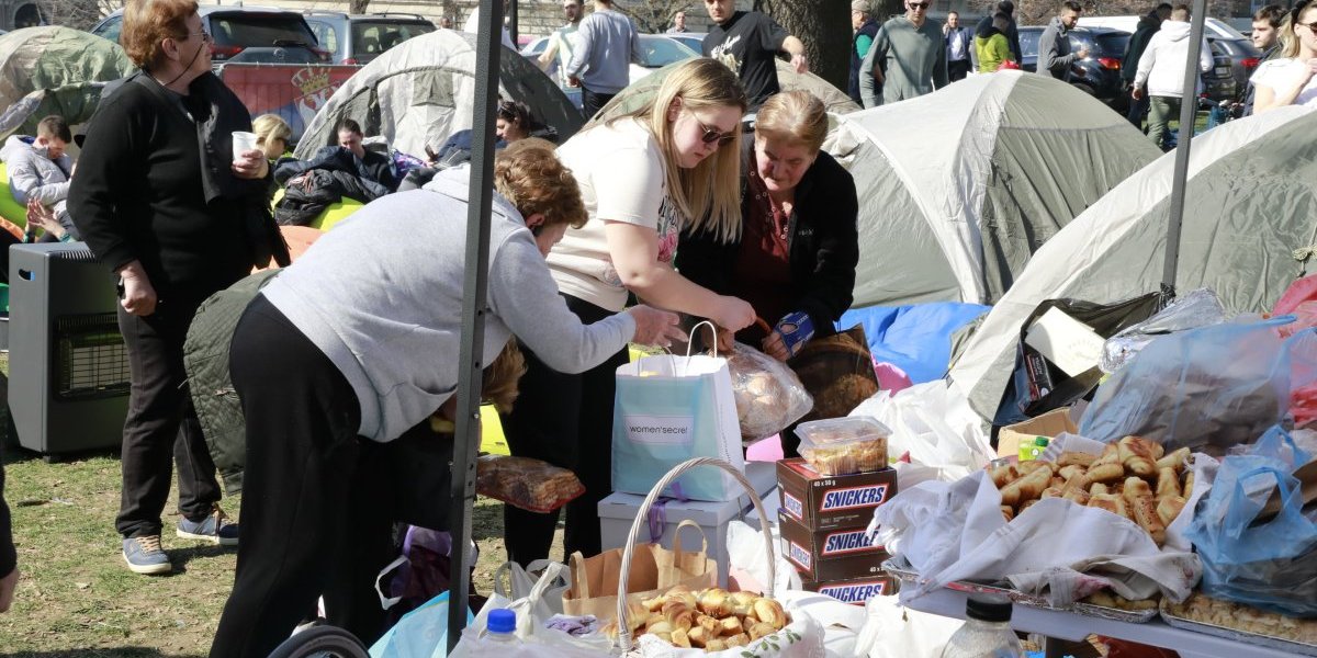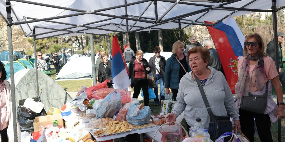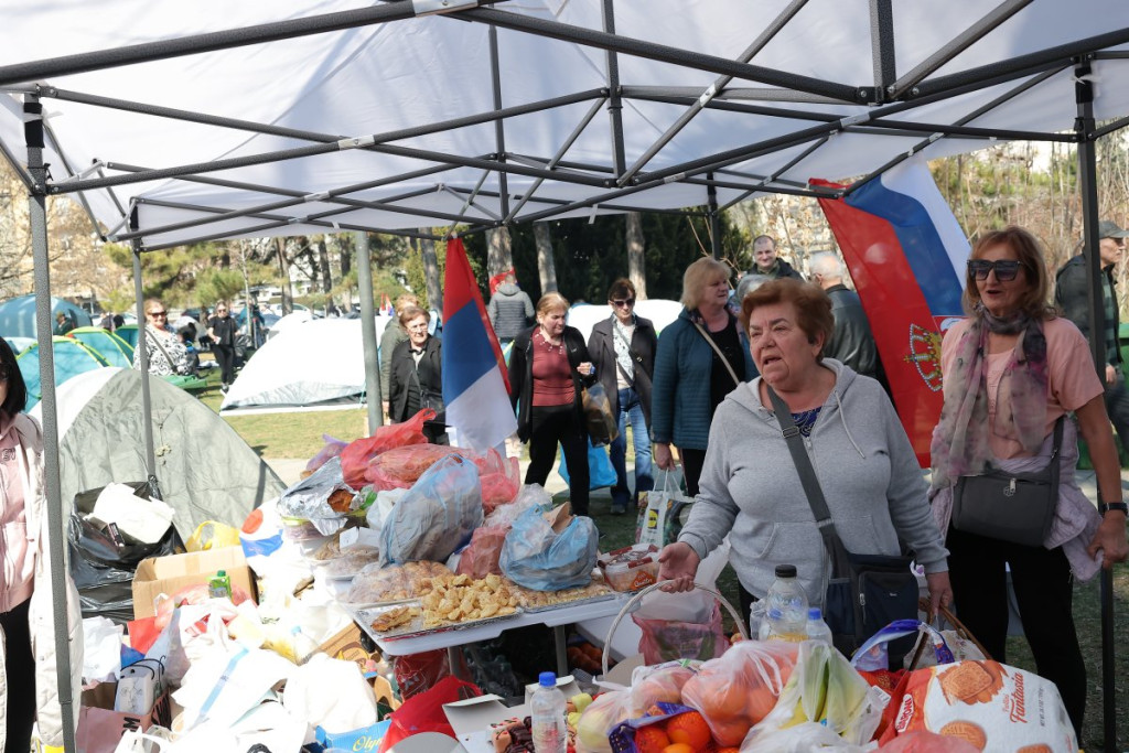 - Noć je protekla izuzetno mirno! Drugi put nam je blokirana stranica na Instagramu, otvorili smo i treći put, a kako se kaže kod nas Srba: Tri puta i Bog pomaže! Nemamo pečenje, ali ljudi su nam doneli kiflice i pite. Donose ono što ne može da se pokvari, i veliko hvala tim ljudima - ističe Miloš.