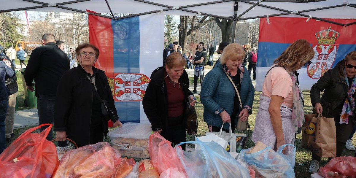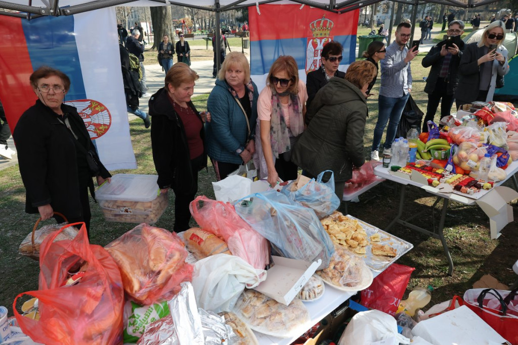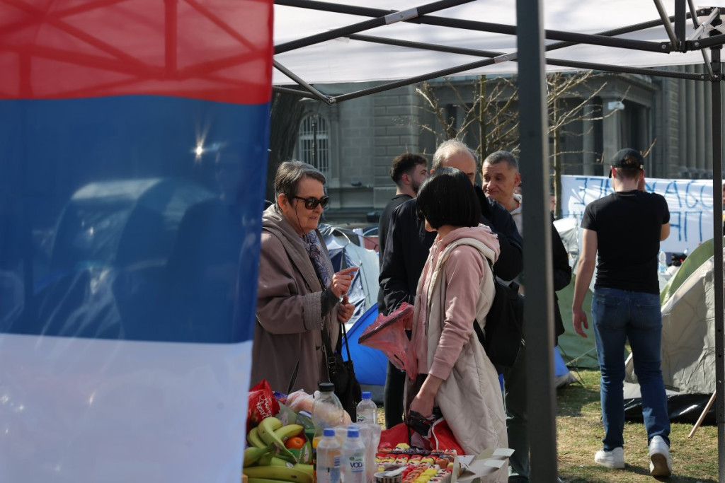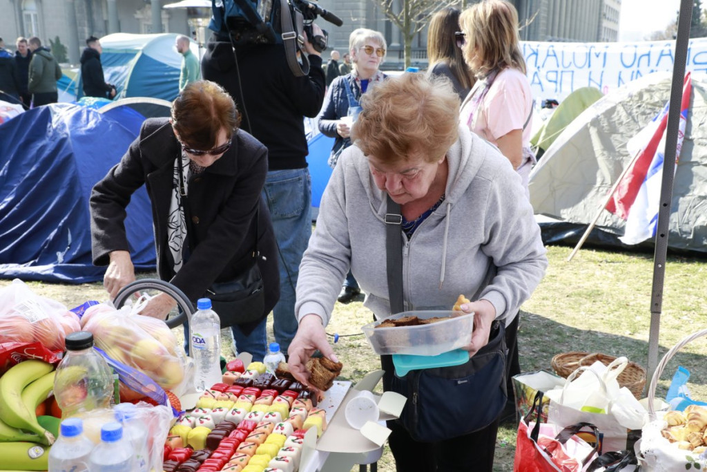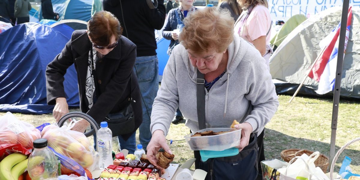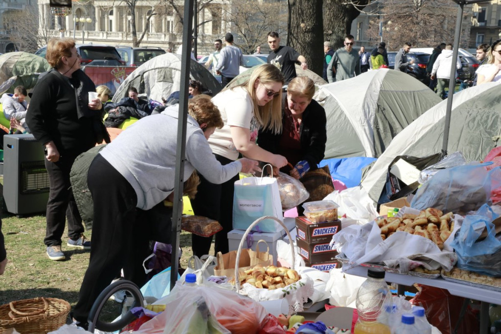 - Noć je protekla izuzetno mirno! Drugi put nam je blokirana stranica na Instagramu, otvorili smo i treći put, a kako se kaže kod nas Srba: Tri puta i Bog pomaže! Nemamo pečenje, ali ljudi su nam doneli kiflice i pite. Donose ono što ne može da se pokvari, i veliko hvala tim ljudima - ističe Miloš.