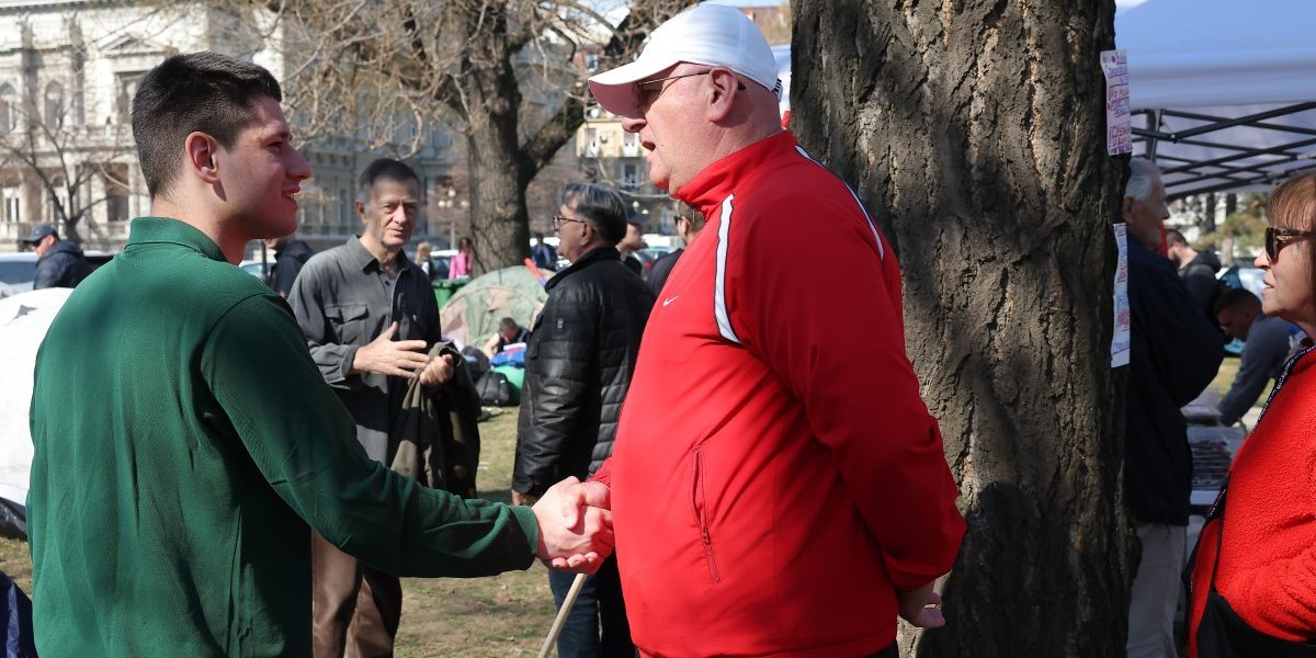 Provokatorka u Pionirskom parku počela da napada Miloša Pavlovića, ali roditelji studenata koji žele da uče su joj odbrusili, kao i sam Miloš, ona je vrlo brzo podvijenog repa otišla.