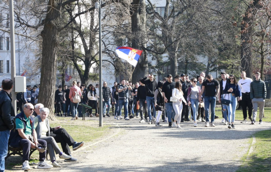 Studenti blokaderi su oko 20.45 počeli da napuštaju Pionirski park i izlaze na Bulevar kralja Aleksandra.