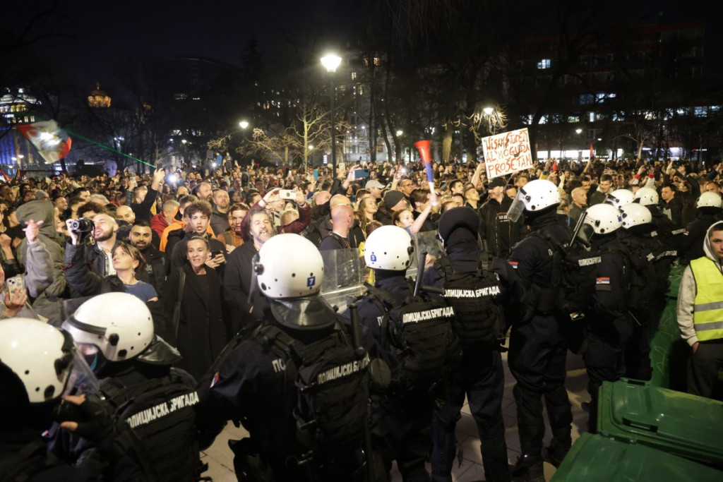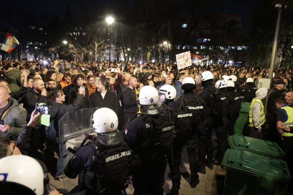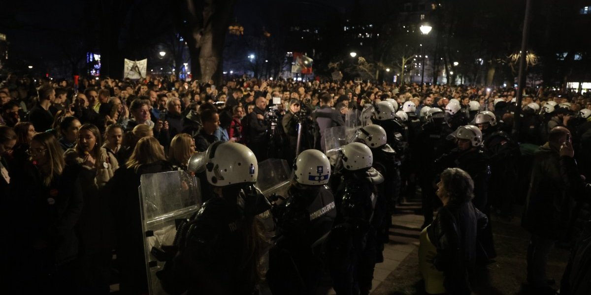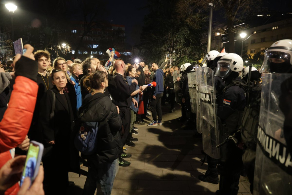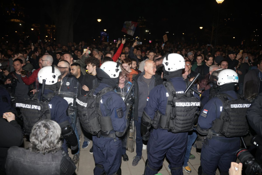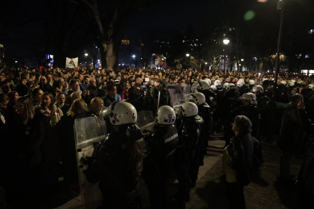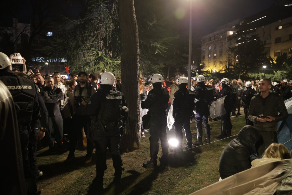 U Pionirski park je došla grupa studenata blokadera, pa je intervenisala policija. Stala je kako bi sprečila blokadere da stignu do studenata koji žele da uče.