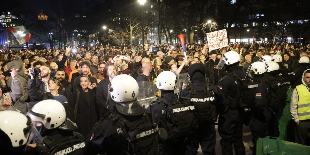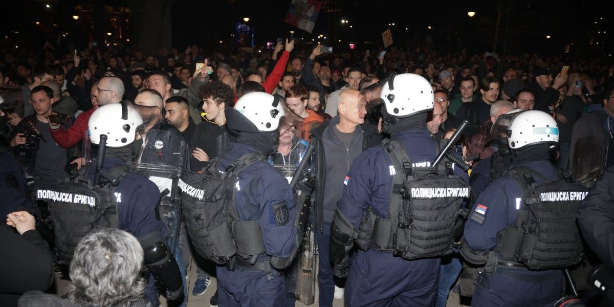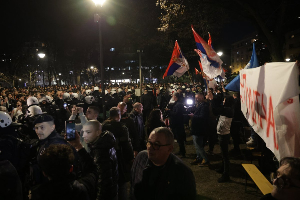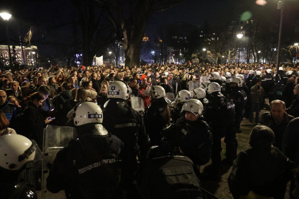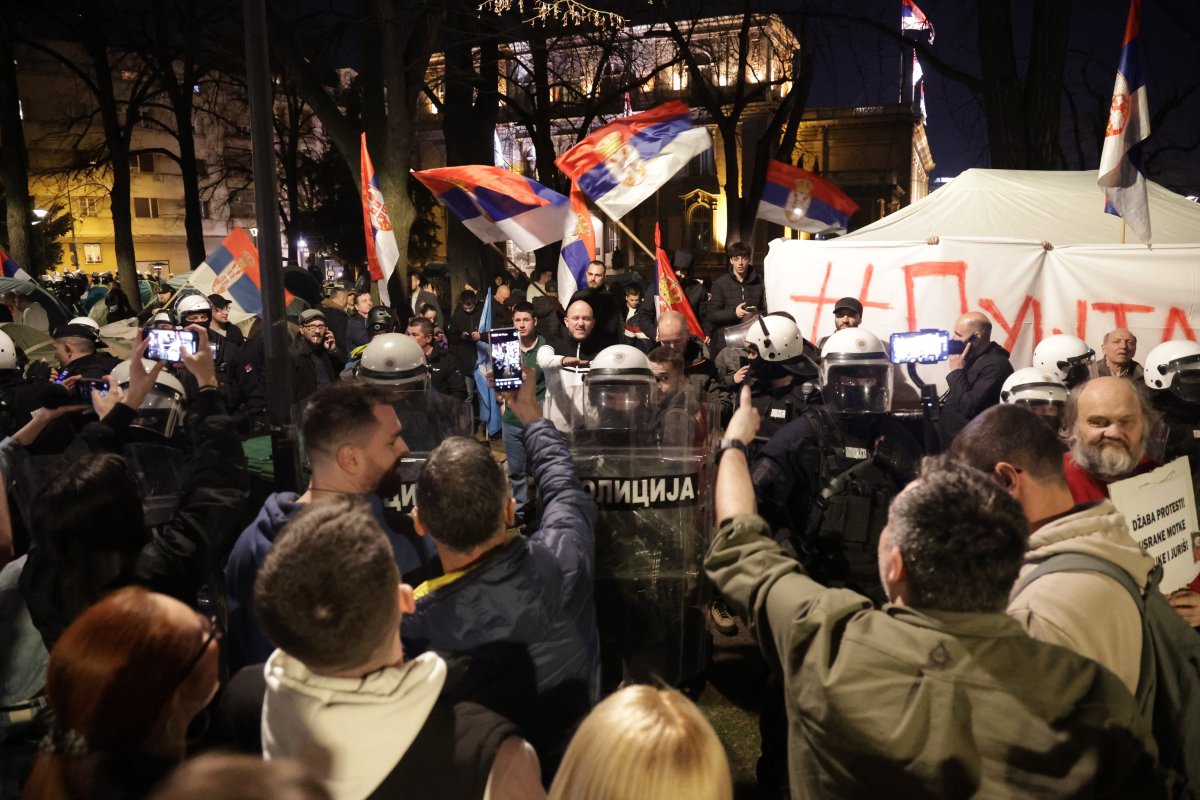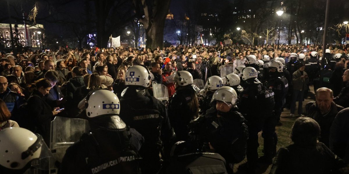 U Pionirski park je došla grupa studenata blokadera, pa je intervenisala policija. Stala je kako bi sprečila blokadere da stignu do studenata koji žele da uče.