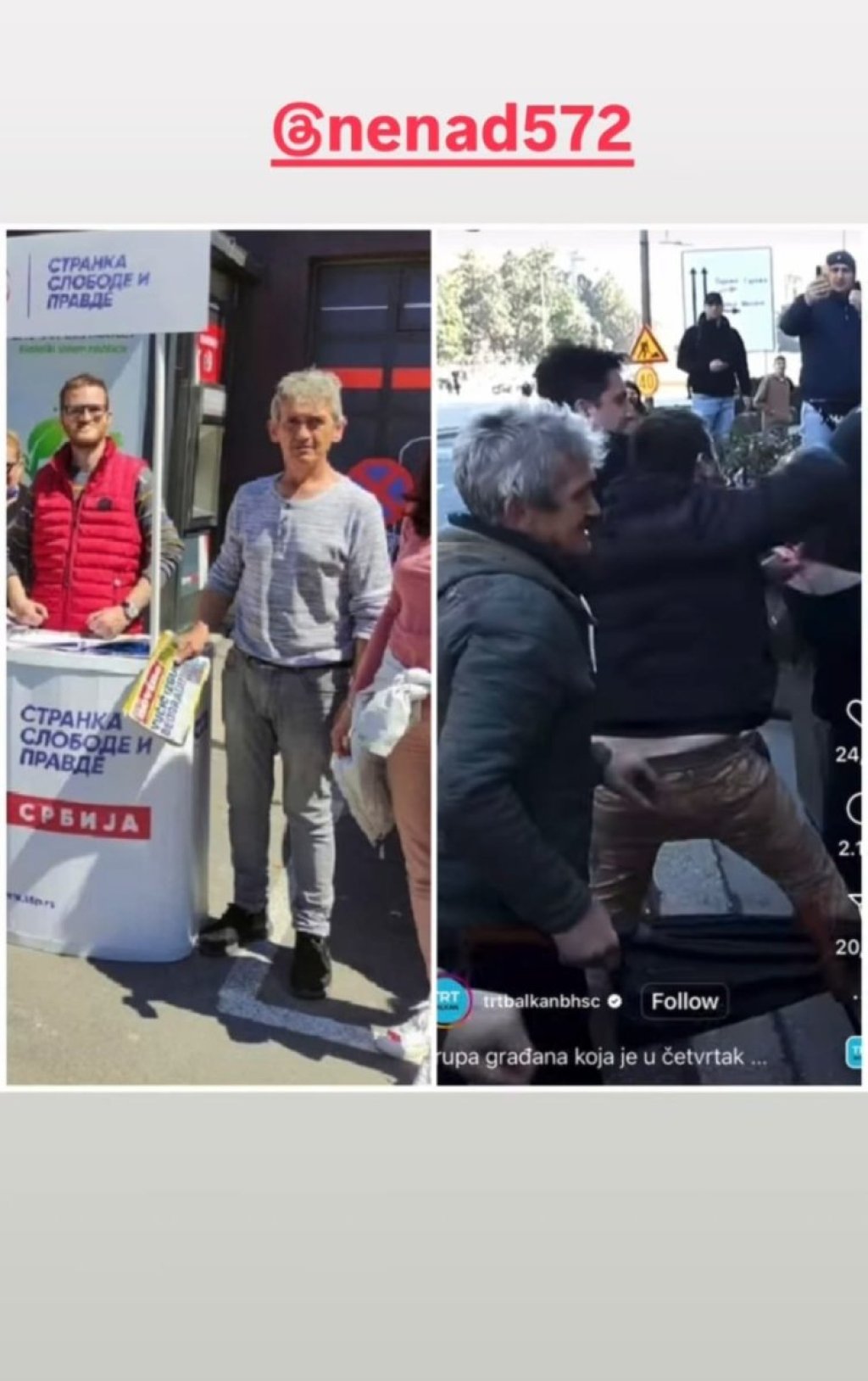 Reč je, naime, o Nenadu Petroviću, predsedniku voždovačkog odbora Stranke slobode i pravde. On je juče pravio haos ispred skupštine, a sa svojim kolegom Borkom Stefanovićem napadao i Branku.