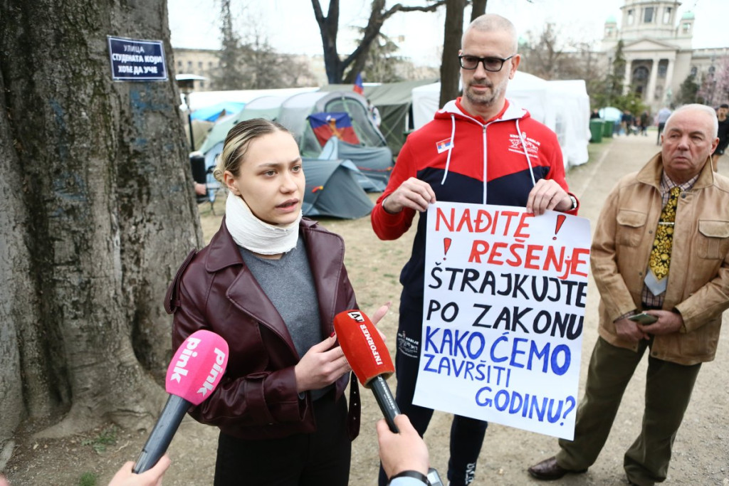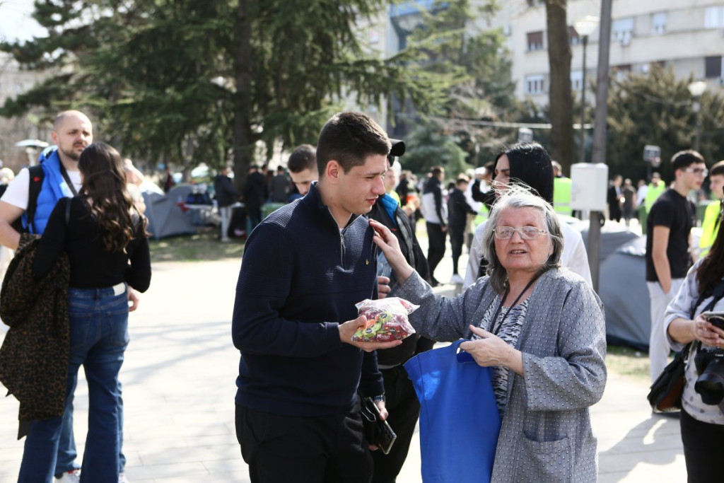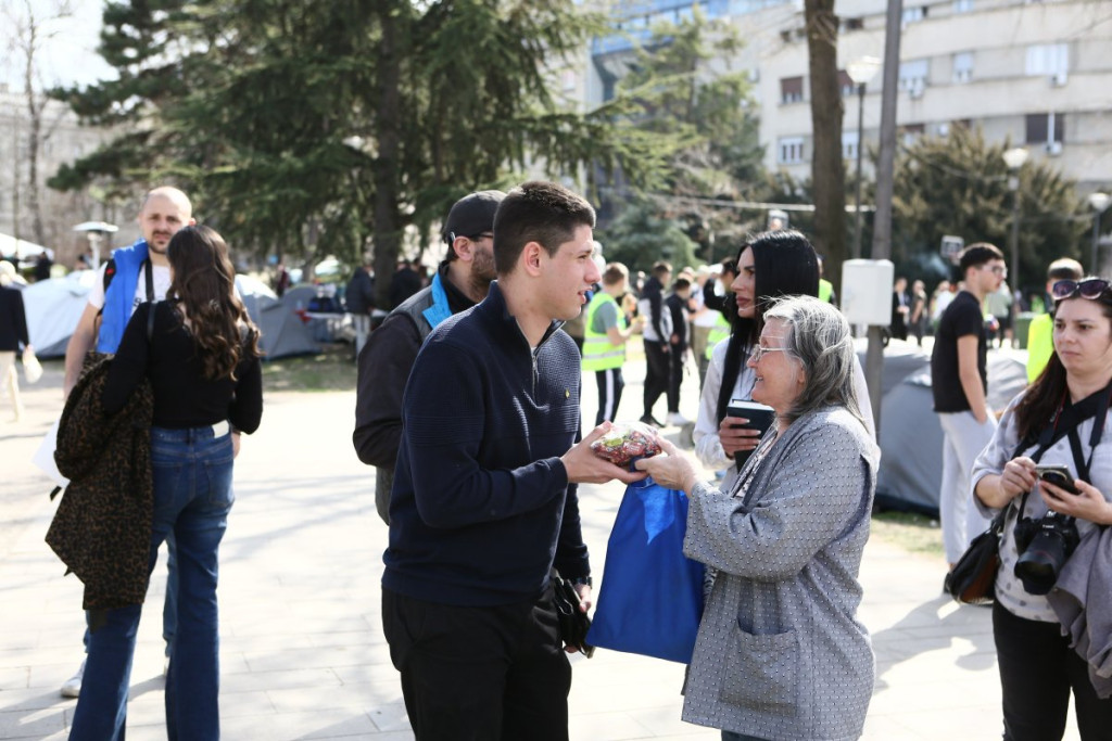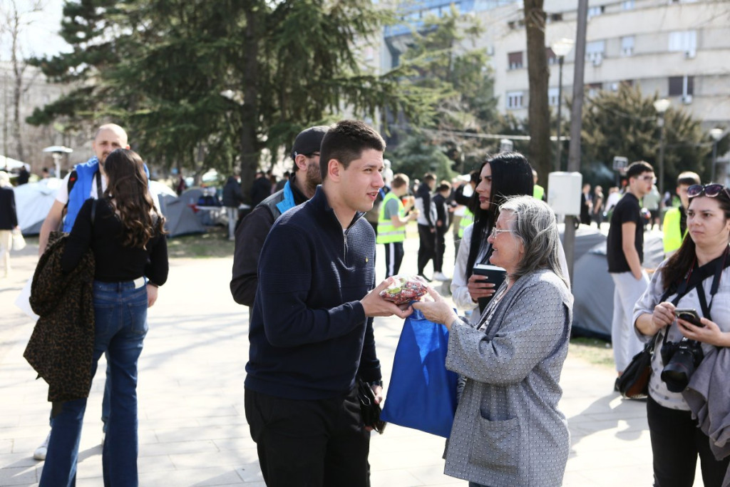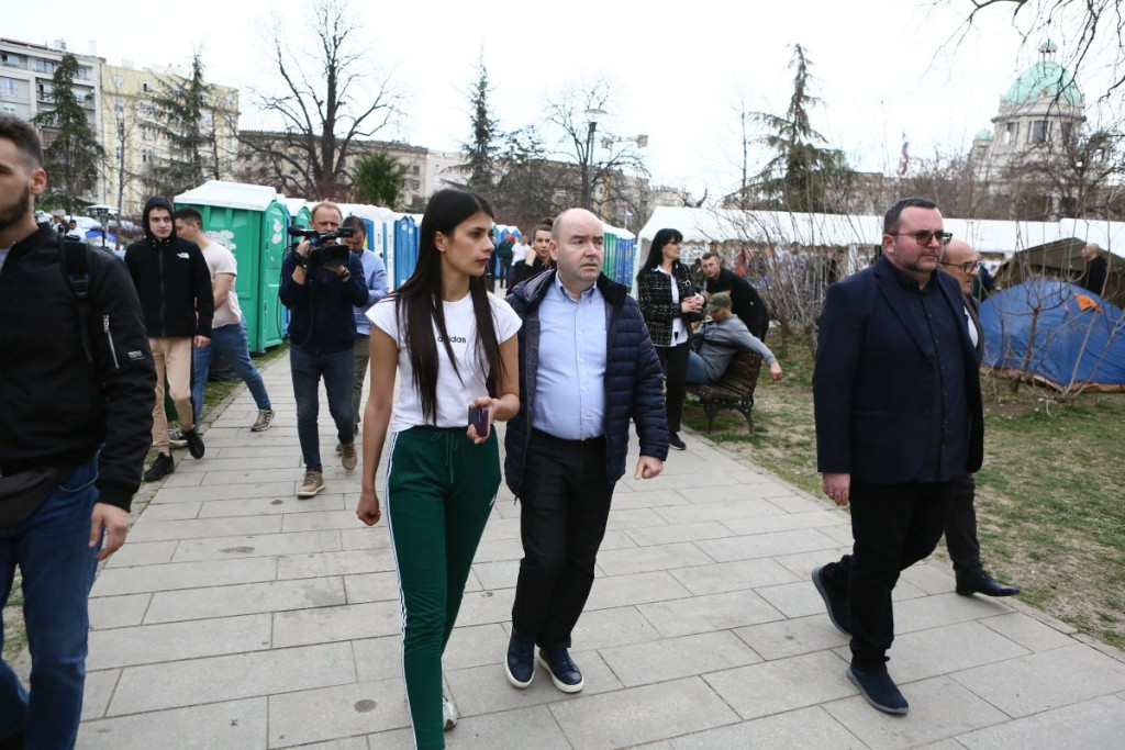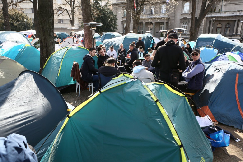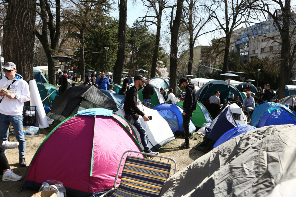 - Pre oko sat vremena pojavili su se studenti blokaderi, njih oko 5, 6, sa jasno prepoznatljivim obeležjima. Počele su provokacije - vikali su "ćaci, ćaci" i iznosili pogrdne komentare prema ljudima u okolini. Nakon toga, prikupili su se studenti koji žele da nastave sa učenjem i jasno im poslali poruku da žele da se vrate na fakultete i nastave svoje studije. Na kraju su ih ljubazno ispratili iz kampa. Situacija je potom potpuno smirena i situacija je sada u potpunosti pod kontrolom - rekao je naš reporter