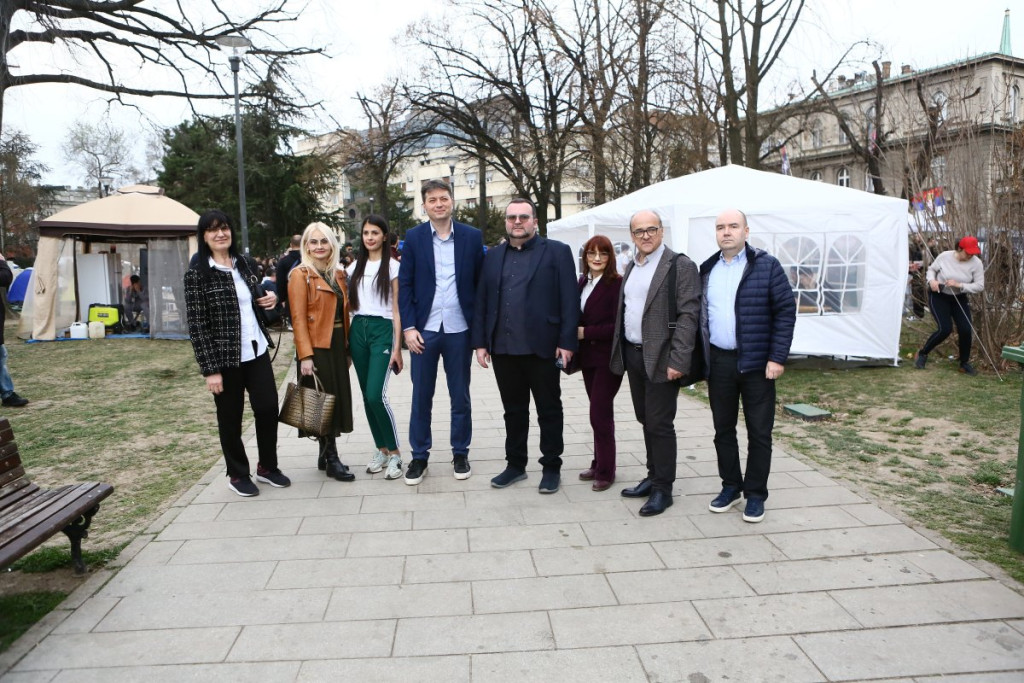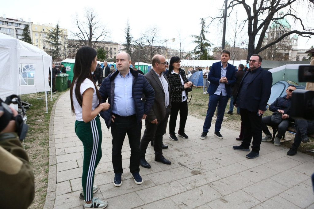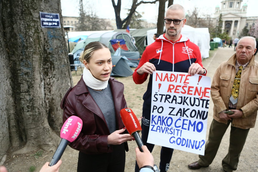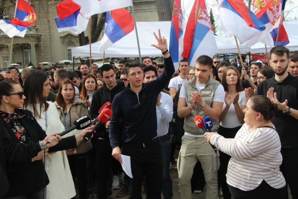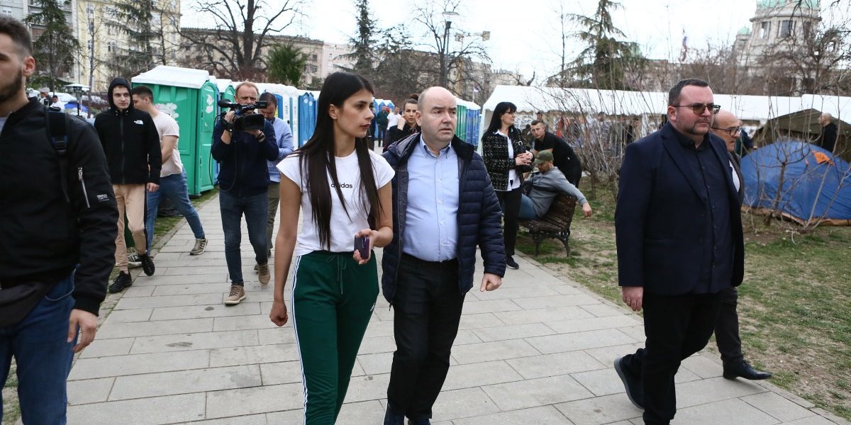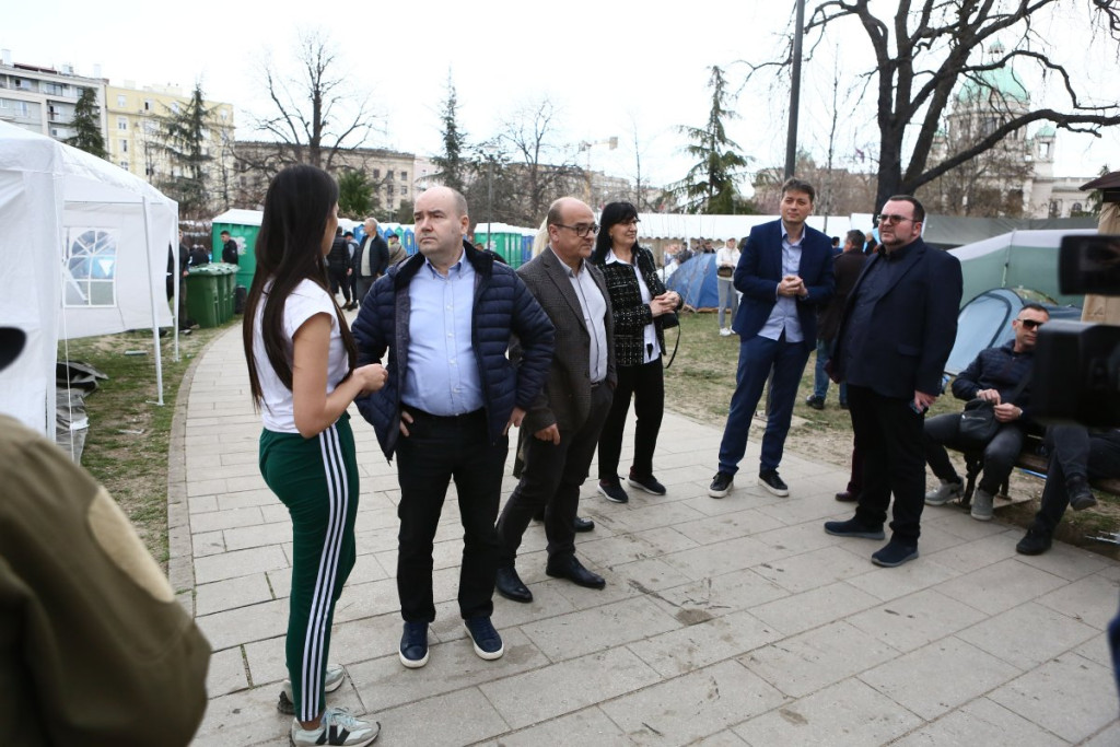 - Pre oko sat vremena pojavili su se studenti blokaderi, njih oko 5, 6, sa jasno prepoznatljivim obeležjima. Počele su provokacije - vikali su "ćaci, ćaci" i iznosili pogrdne komentare prema ljudima u okolini. Nakon toga, prikupili su se studenti koji žele da nastave sa učenjem i jasno im poslali poruku da žele da se vrate na fakultete i nastave svoje studije. Na kraju su ih ljubazno ispratili iz kampa. Situacija je potom potpuno smirena i situacija je sada u potpunosti pod kontrolom - rekao je naš reporter