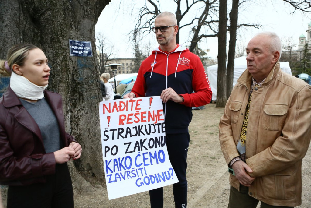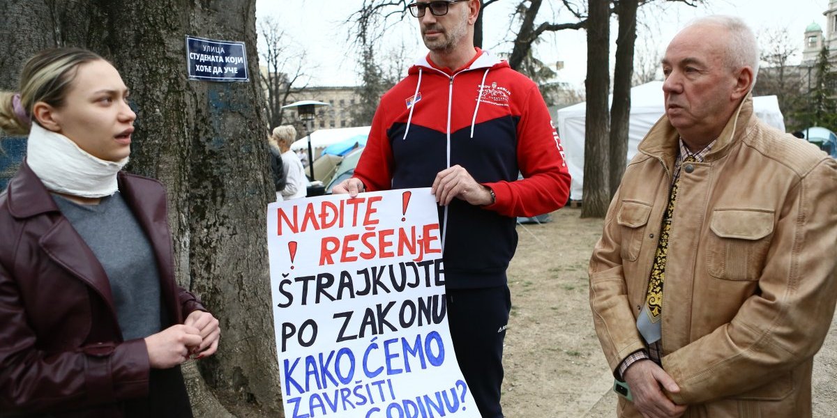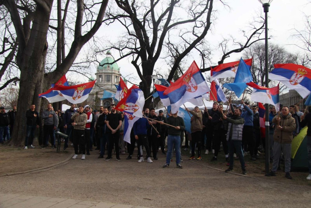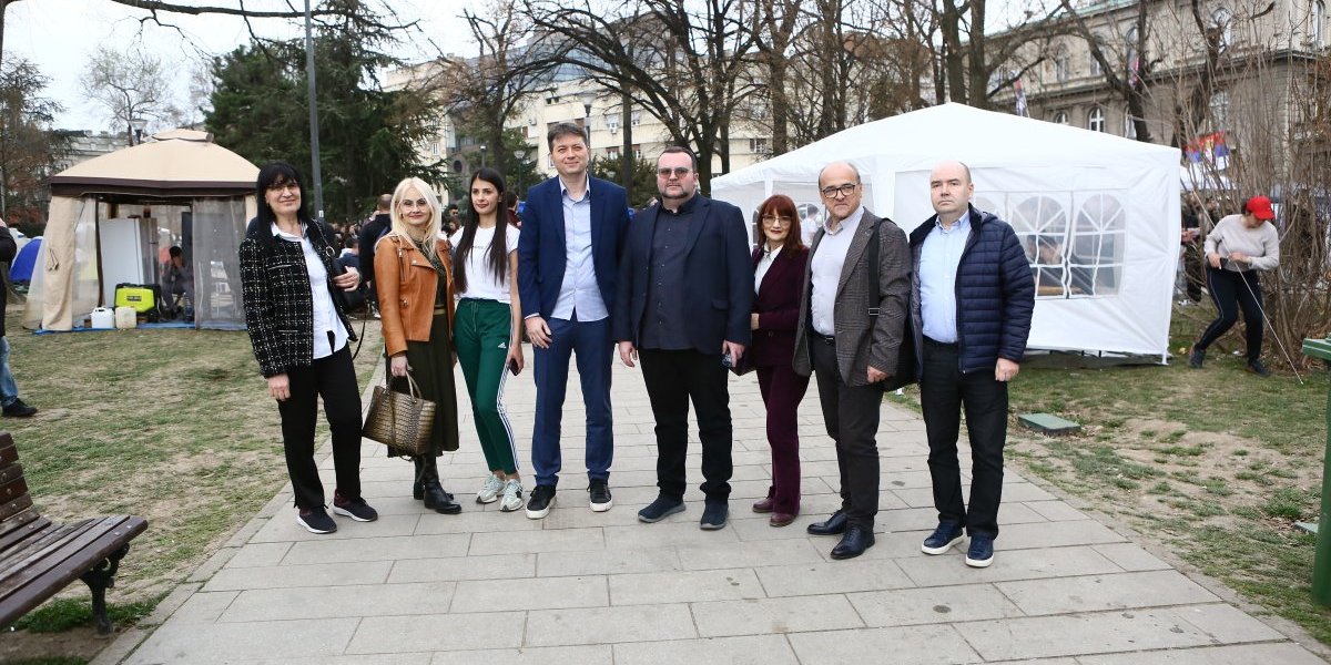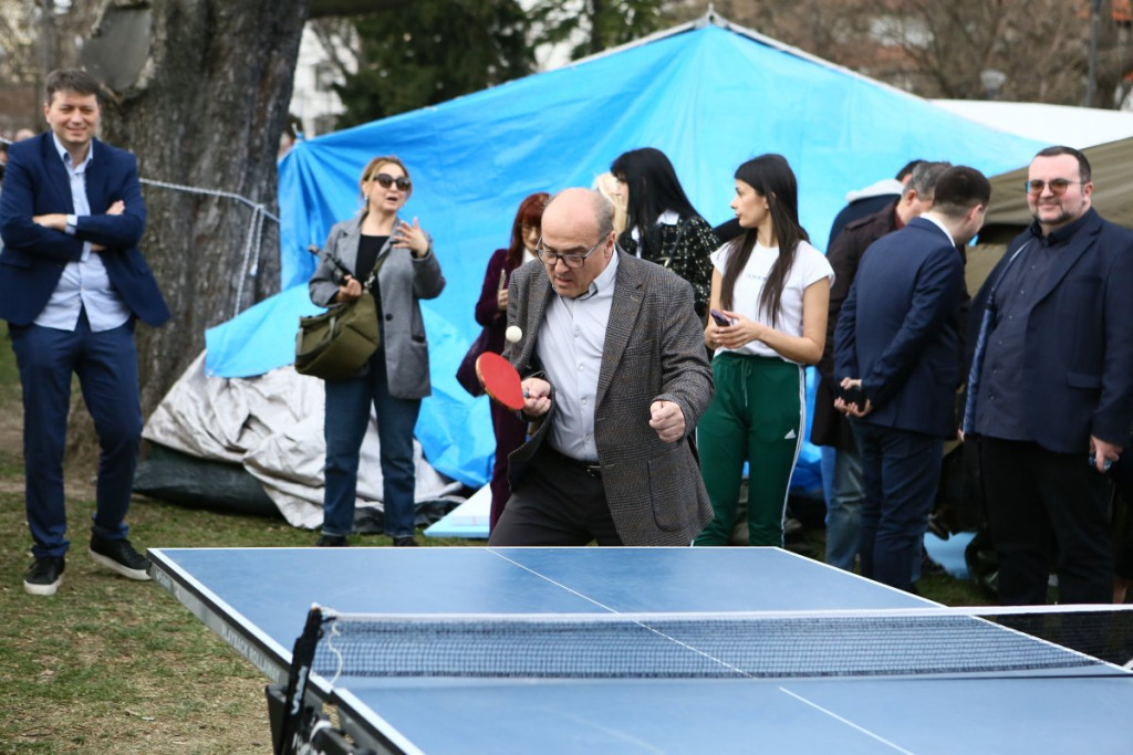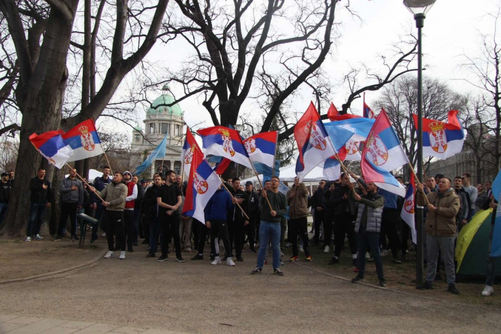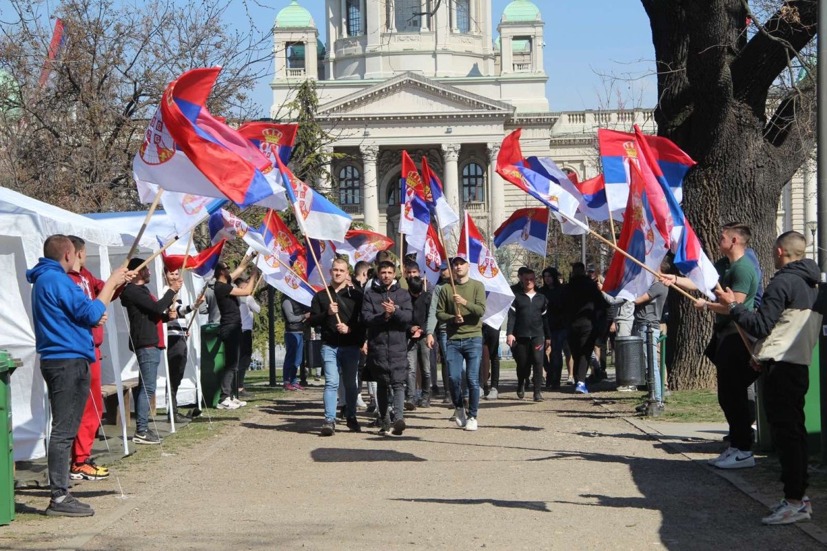 - Pre oko sat vremena pojavili su se studenti blokaderi, njih oko 5, 6, sa jasno prepoznatljivim obeležjima. Počele su provokacije - vikali su "ćaci, ćaci" i iznosili pogrdne komentare prema ljudima u okolini. Nakon toga, prikupili su se studenti koji žele da nastave sa učenjem i jasno im poslali poruku da žele da se vrate na fakultete i nastave svoje studije. Na kraju su ih ljubazno ispratili iz kampa. Situacija je potom potpuno smirena i situacija je sada u potpunosti pod kontrolom - rekao je naš reporter