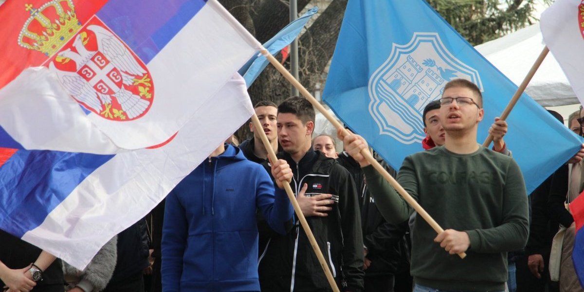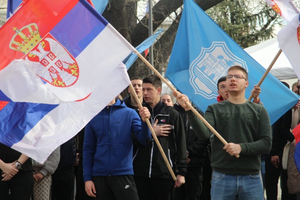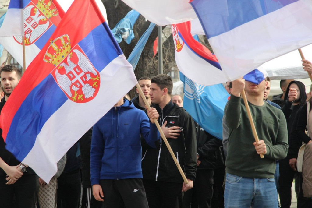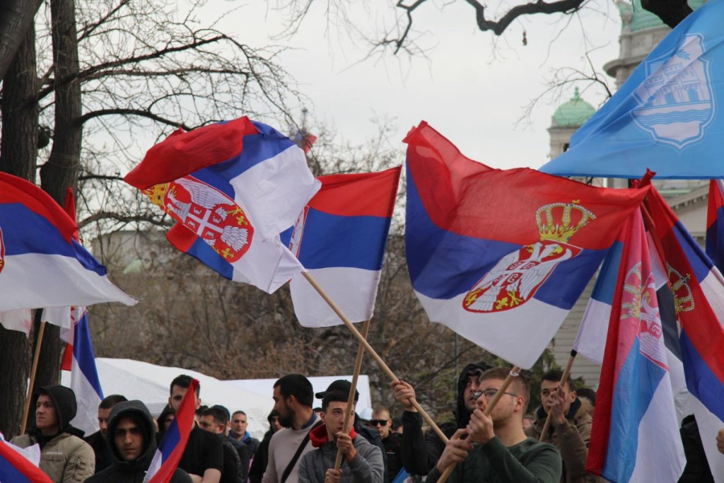 Studenti na provokacije blokadera uzvraću povicima: "Kosovo je srce Srbije!" Oni pevaju pesmu "Oj Kosovo, Kosovo".