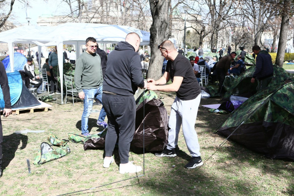 Još od četvrtka uveče, studenti spremni za nastavak nastave borave u šatorima u Pionirskom parku u Beogradu, zahtevajući okončanje blokada fakulteta kako bi mogli da prisustvuju predavanjima.