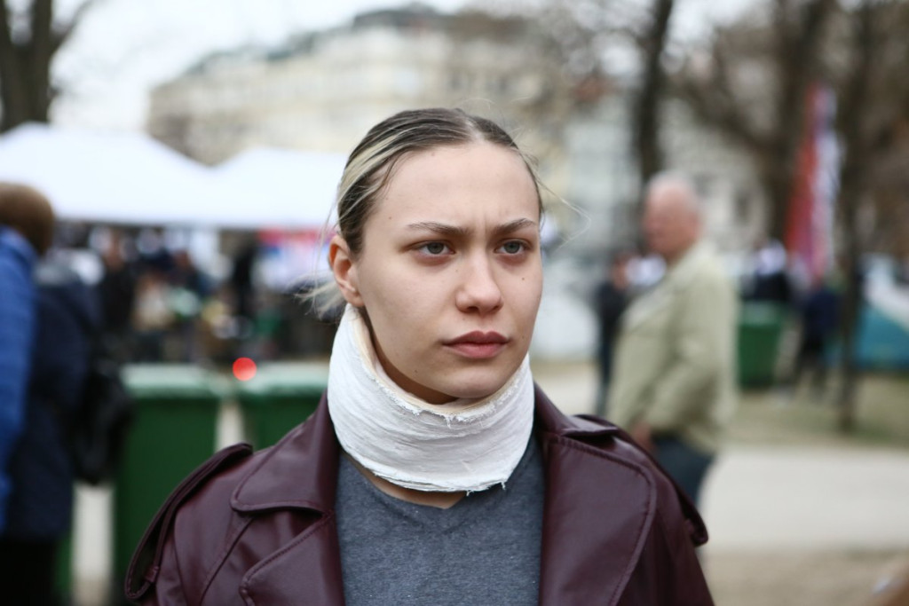 Pripadnici Ministarstva unutrašnjih poslova u Beogradu, Policijske stanice Stari grad, doveli su u službene prostorije S. R. (28), koji je, kako se sumnja, večeras, u Pionirskom parku, otvorenom šakom udario u glavu dvojicu učesnika javnog okupljanja.