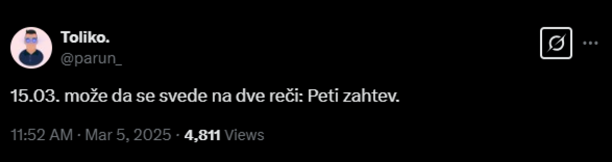 Prema retorici koju diktiraju Đilas, Marinika Tepić i ostali iz opozicije preko svojih medija i ovih tviteraša, kulminacija treba da nastupi na skupu 15. marta