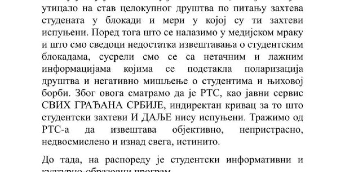 Podsetimo, oni su večeras blokirali ulaz u zgradu Javnog servisa i pozvali da će ta blokada trajati 22 sata.