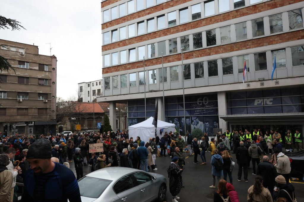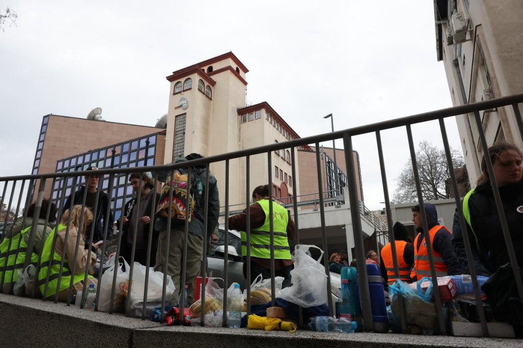 I jutros je nastavljena blokada ispred zgrade RTS-a, a okupljeni pozivaju građane da im se pridruže jer, kako kažu, "treba im pomoć" i "nema ih dovoljno".