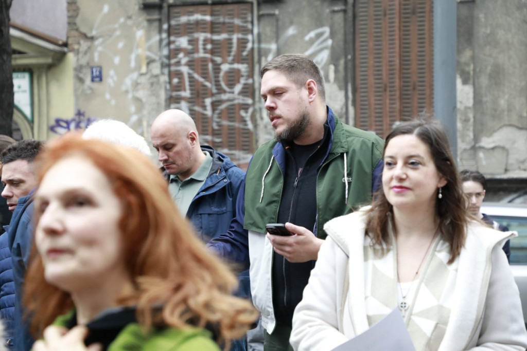 Kamera RTS izašla je nešto pre 9 sati da snimi dešavanje ispred zgrade, a boljševički plenumaši su to negodovali.