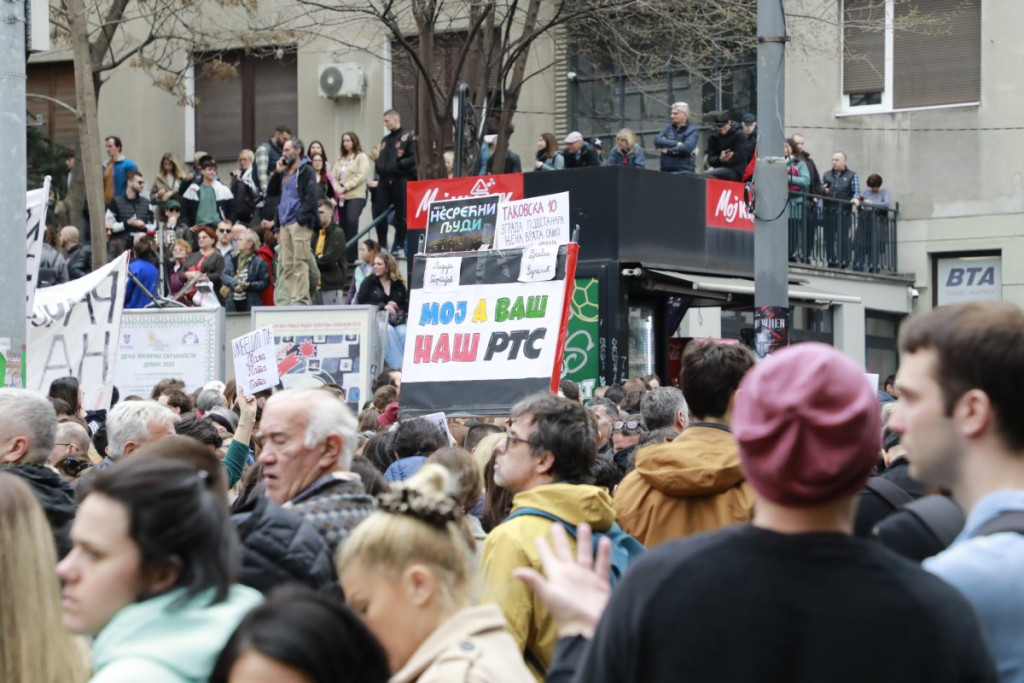 Inače kako saznajemo, prosek godina okupljenih ispred RTS je oko 50 godina.