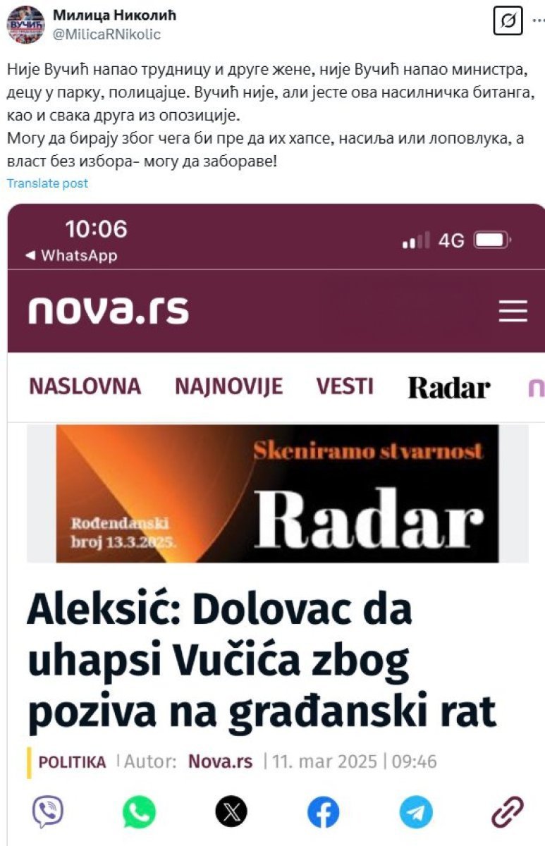 Jedan od takozvanih lidera opozicije Miroslav Aleksić, bez imalo srama, pozvao je na hapšenje predsednika Srbije Aleksandra Vučića zbog nasilja koje sprovodi opozicija već četiri meseca!