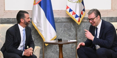Predsednik Srbije Aleksandar Vučić danas se sastao sa Donaldom Trampom mlađim, sinom predsednika Sjedinjenih Američkih Država i poručio da zajedno grade svetliju budućnost.