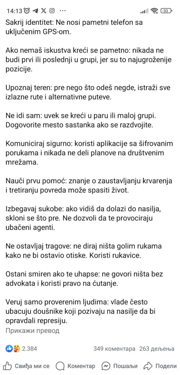 "Poneti gas-maske, voki-toki, sprejeve... Ostavite telefone da vas ne mogu locirati, grupišite se i krećite se uvek u grupama", samo su neki od saveta koje blokaderi dele, prema svemu sudeći spremajući se za haos koji će izazvati.