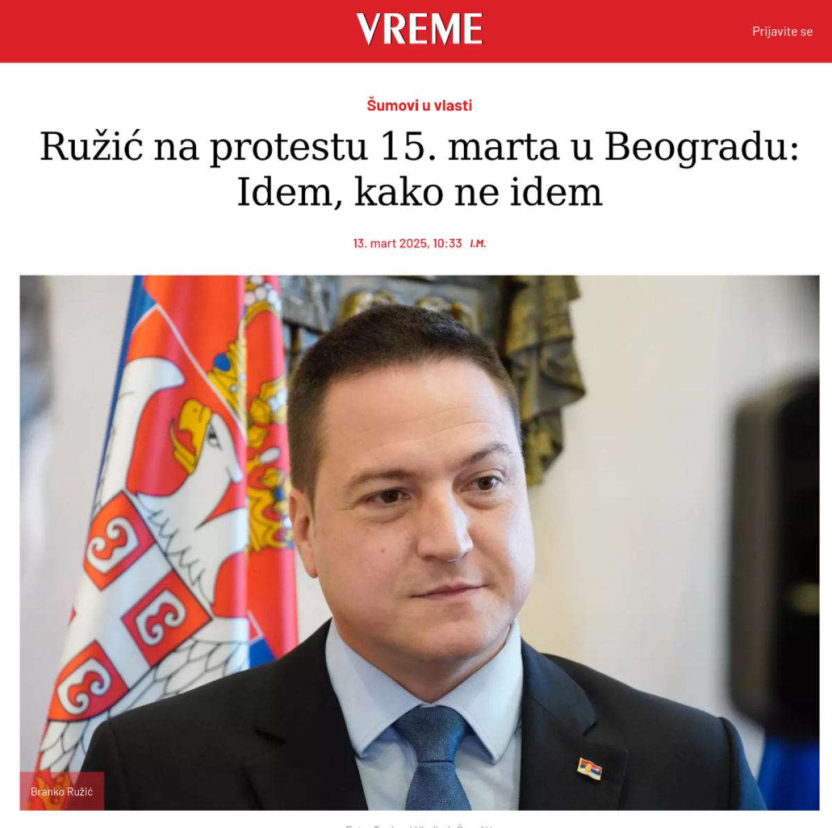 Visoki funkcioner Socijalističke partije Srbije Branko Ružić najavio je da će ići na protest 15. marta koji organizuje ekstremističa opozicija skrivajući se iza studenata.