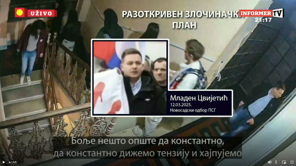 Sastanak u prostorijama novosadaskog odbora Pokreta slobodnih građana - 12. marta 2025. godine u trajanju od 2 sata sa početkom oko 20 časova.