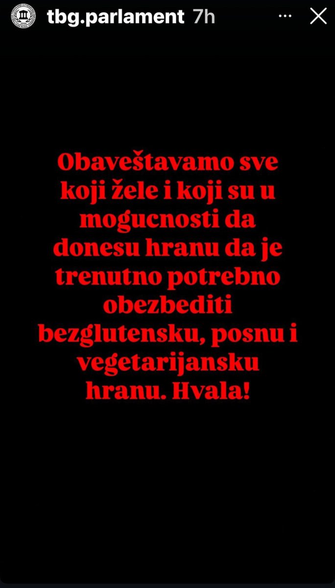 - Obaveštavamo sve koji žele i koji su u mogućnosti da donesu hranu da je trenutno potrebno obezbediti bezglutensku, posnu i vegetarijansku hranu. Hvala - navodi se u objavi na njihovom Instagram profilu.