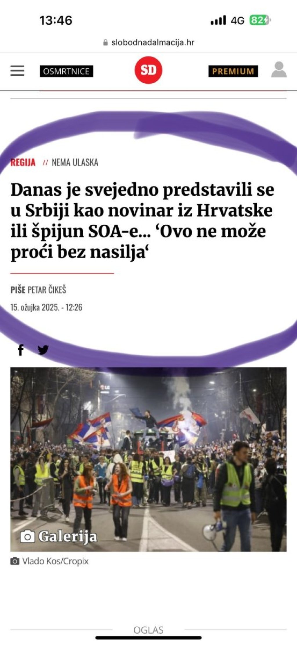 Hrvatski mediji prepuni su tekstova i licemernih objava o današnjim protestima u Beogradu, a protesti u Srbiji su im važniji od života njihovog premijera.