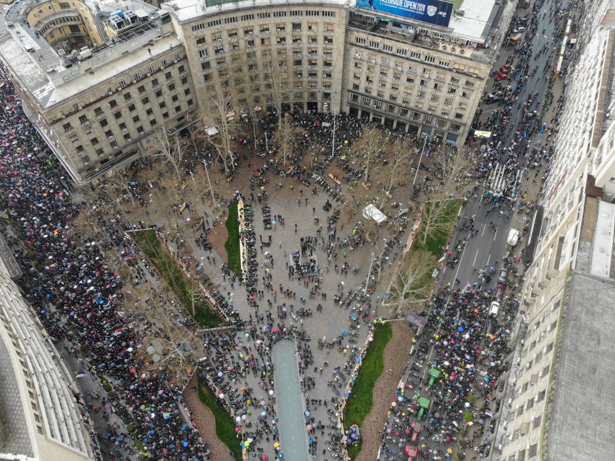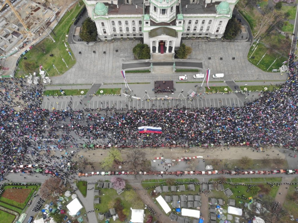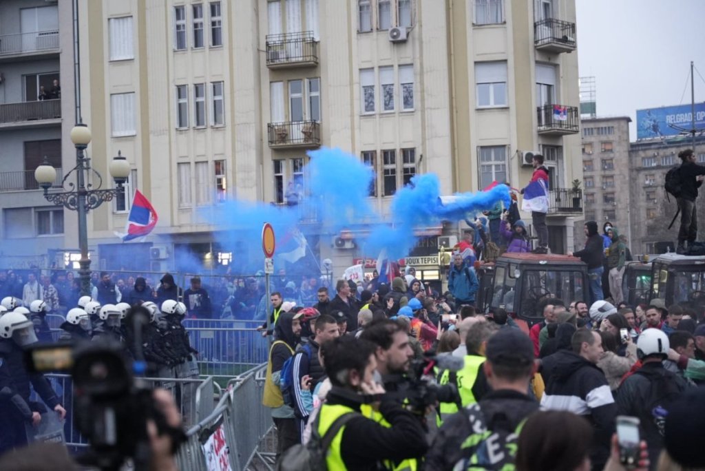 - U svetlu nedavnog razvoja događaja i suočeni sa sve vrelijom situacijom u društvu, studenti u blokadi su odlučili da promene mesto događaja našeg protesta sa platoa ispred Skupštine na Slaviju. Ova odluka doneta je kako bi se sprečilo moguće nasilje i kako bismo osigurali bezbednost svih učesnika našeg protesta, ali i studenata koji kampuju u Pionirskom parku. Mi pozivamo sve da nam se pridruže na Slaviji kako bismo na veličanstven način zajedno poslali jaku poruku da mi ne odustajemo dok se naši zahtevi ne ispune - navodi se na Instagram profilu "ETF u blokadi".