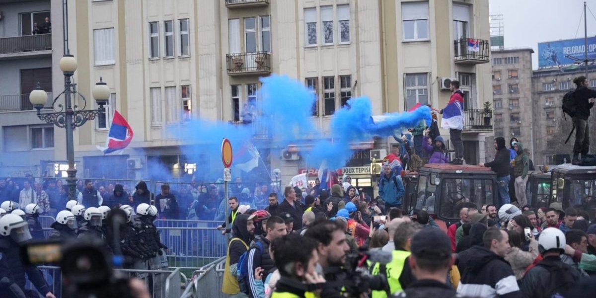 - Jedna grupa studenata krenula je da napada policiju studenti redari hteli da pomognu, a onda su se umešali studenti opzicionih stranaka i došlo je do napada na policiju. Ekstremisti s fantomkama krenuli su na policiju - objasnio je u programu uživo glavni urednik Inforemera Dragan J. Vučićević.
