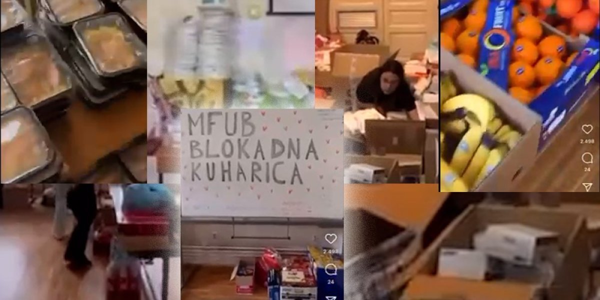 Kako se može videti u snimku koji objavljujemo, za blokadere je obezbeđena hrana i piće, paketi vode, gajbe voća, hrana upakovana kao iz restorana, dušeci, posteljina, jastuci u celofanu potpuno novi, kutije higijenske opreme...