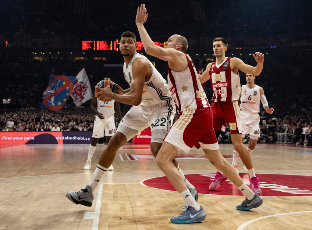 Košarkaši Crvene zvezde poraženi su od madridskog Reala sa 78:72 (22:9, 20:18, 13:18, 22:27) u 32. kolu Evrolige. Presudila je prva deonica, koju su gosti pobedili sa 22:9, a u jednom trenutku imali i 14:2. Crveno-beli su sada na učinku od 18 pobeda i 14 poraza i na deobi šestog mesta upravo sa popularnim "kraljevskim klubom" i Parizom.