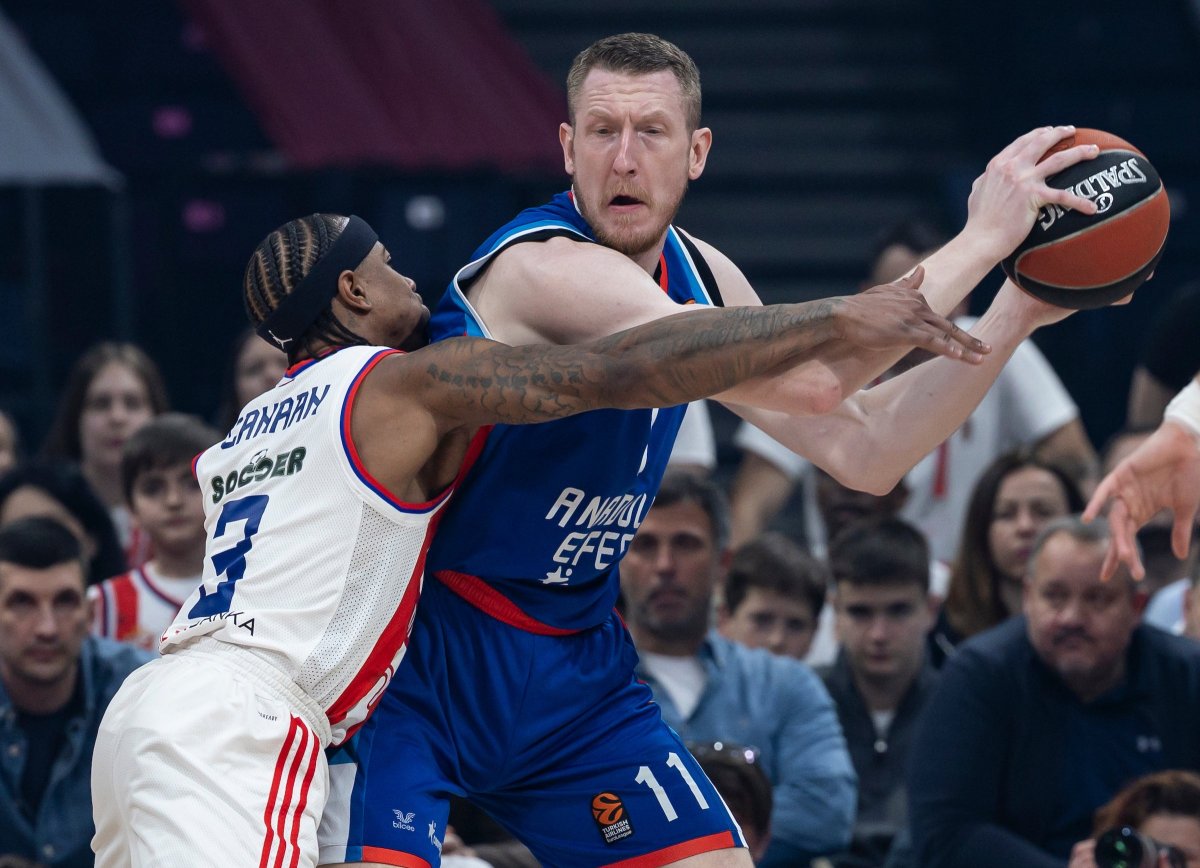 43. minut - Opet promašuje Petrušev, mora Zvezda nešto da pogodi, ako misli da pobedi. Larkin promašuje, ali ofanzivni skok Efesa i trojka Larkina za +5.