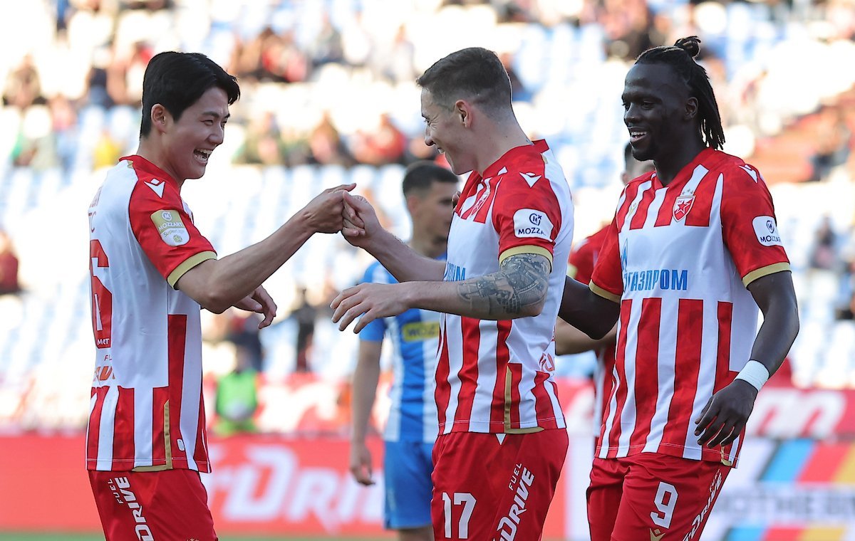 Fudbaleri Crvene zvezde u 3. kolu plej-ofa pobedili su OFK Beograd 5:2.