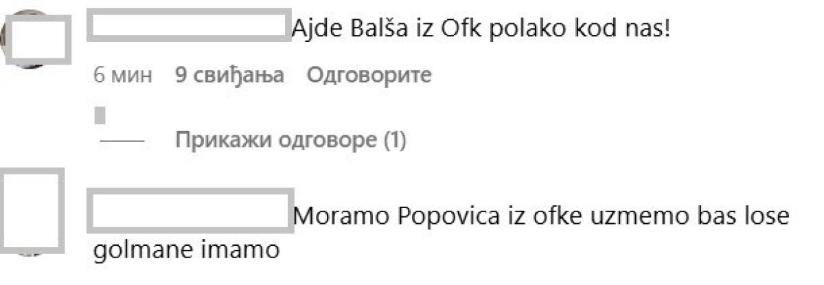 "Ajde Balša iz OFK polako kod nas", "Moramo Popovića iz OFKe da uzmemo baš loše golmane imamo", poručuju "delije".