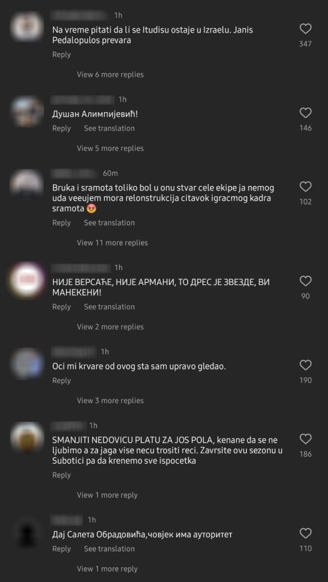 "Na vreme pitati da li se Itudisu ostaje u Izraelu. Janis prevara. Daj Saleta Obradovića, čovek ima autoritet. Dušan Alimpijević!", samo su neki od komentara na zvaničnom Instagram nalogu Crvene zvezde u postu vezanom za jučerašnju utakmicu.