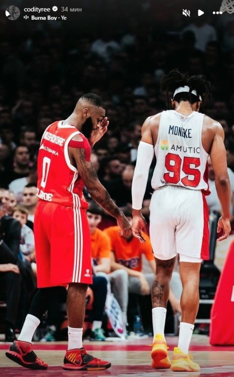 Plejmejker je na svom Instagramu samo objavio zajedničku fotografiju sa nigerijskim košarkašem iz prošle sezone, kada je Moneke igrao protiv Zvezde u Beogradskoj areni.