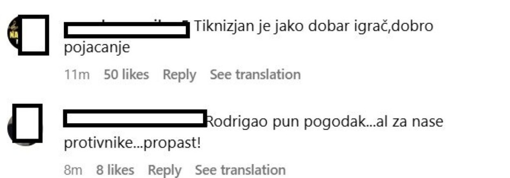 "Tiknizjan je jako dobar igrač,dobro pojačanje", "Ovo kontrolni meč? Ne bih rekao.Zašto nije igrao prvi tim? Koja je poenta igrati sa ovolikom decom a neće igrati u LŠ kvalifikacije?", "Bolje i ovako koji poraz da vidimo gde smo, šta smo, gde grešimo, a ne kao nekad dobijemo Fejnord, Verder na pripremama, pa dođe PSV, Zenit, posle pa nas ispraše kao amatere. I bolje što igramo od drugog kola, taman da se zategnu žice gde ne štima", "Rutinski poraz kada sa neuigranim timom i bez pola najbitnijih igrača igrač protiv tima koji je na nivou ekipe za Ligu šampiona. Sad ce oni u Austriju da igraju još pripremnih mečeva i trebalo bi da ceo sastav bude na okupu pa ćemo videti kako ce sve funkcionisati", komentari seu navijača na društvenim mrežama.