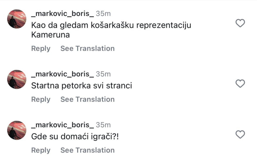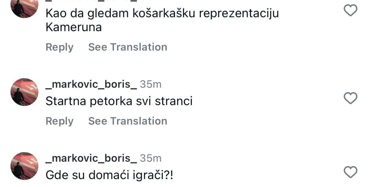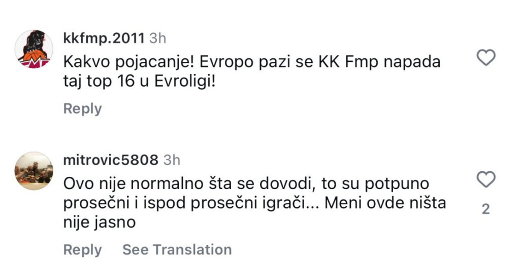 "Kao da gledam košarkašku reprezentaciiju Kameruna", "Startna petorka svi stranci", "Gde su domaći igrači?", "Kakvo pojačanje, Evropo pazi se, KK FMP napada taj TOP 16 u Evroligi", "Nije normalno šta dovode, igrače ispod proseka, meni ovde ništa nije jasno", "Stub srpstva, sve srpski igrači, bravo", samo su neki od komentara ogorčenih "delija" na društvenim mrežama.