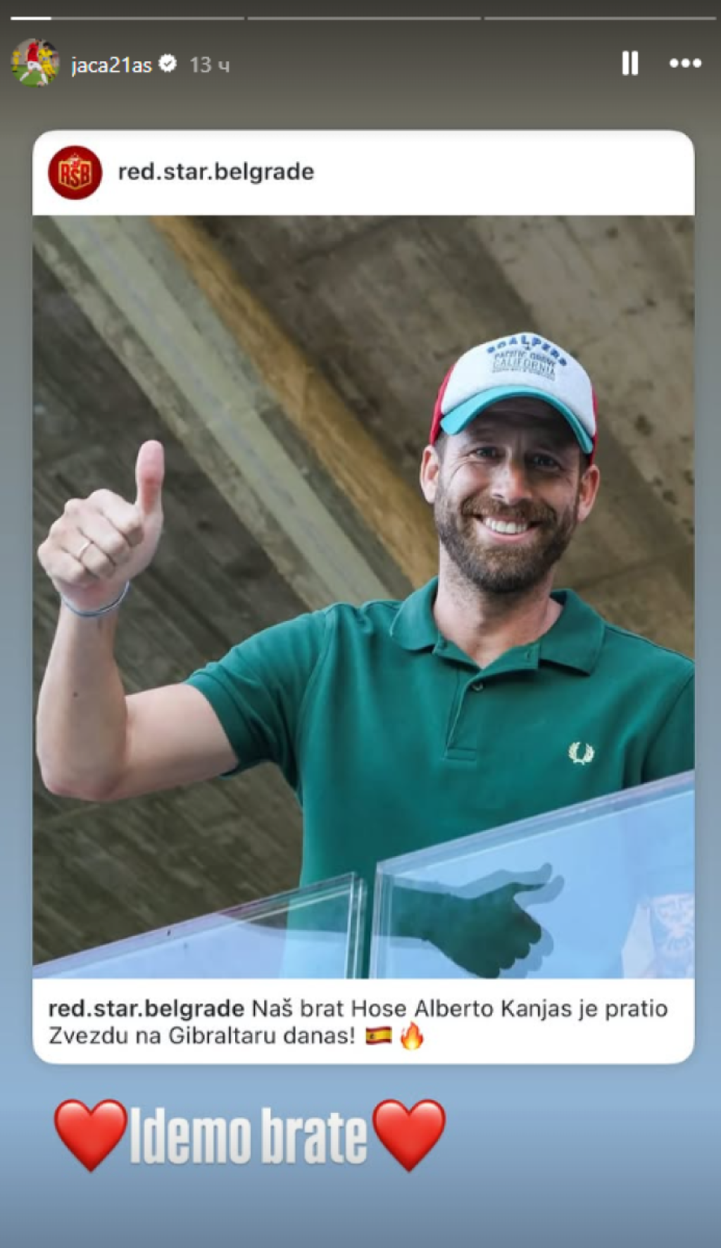 Hoze Alberto Kanjas, bivši vezista Crvene zvezde i trenutni član Mančestera 62 sa Gibraltara, bodrio je crveno-bele sa tribina tokom meča kvalifikacija za Ligu šampiona, a nakon utakmice se pojavio i u svlačionici srpskog šampiona.