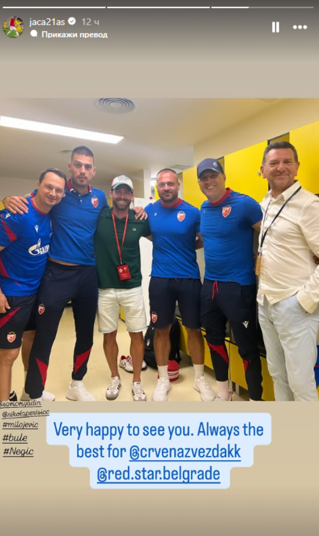 Po završetku utakmice ušao je u svlačionicu Zvezde, gde je i nastala zajednička fotografija koju je bivši fudbaler objavio na Instagramu uz poruku: