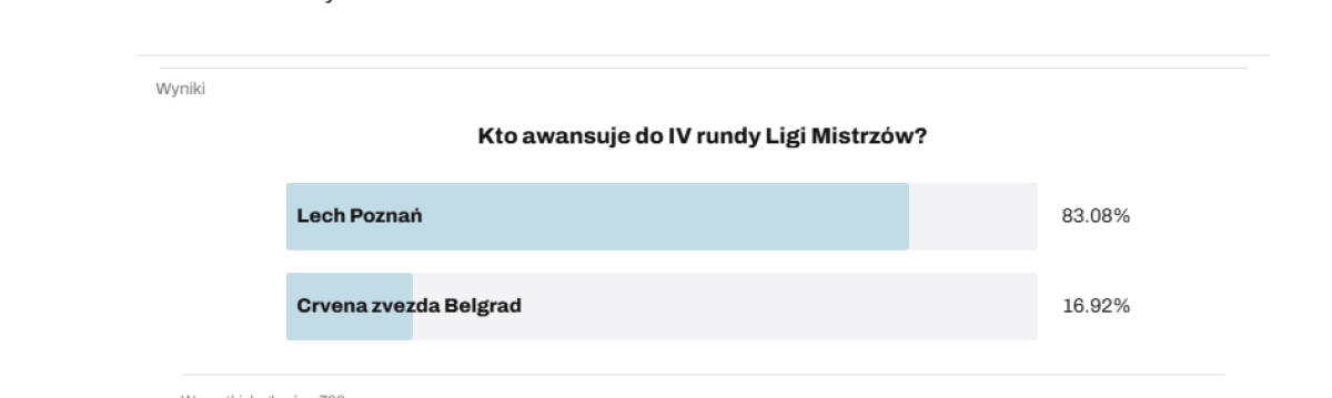 U anketi na portalu Glosvelkopolski pred prvi meč dve edkipe (20.30, RTS 1, Arena premijum 1) čak 83,08 odsto Poljaka glasalo je da će se Leh domoći četvrtog kola kvalifikacija, dok je za šampiona Srbije 16,92 odsto. Jasno je da su u anketi učestvovali uglavnom navijači Leha, koji ne sumnjaju u svoje ljubimce.