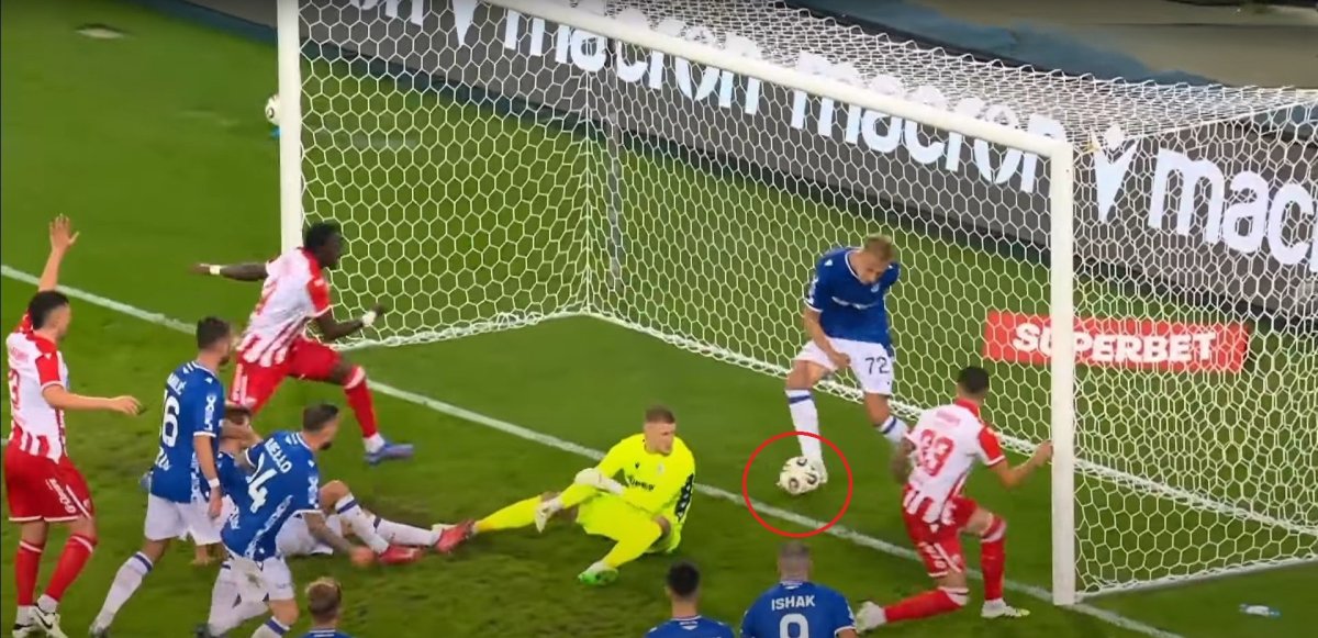 Naime, ekipa Vladana Milojevića izvela je korner, centirao je Elšnik, lopta je stigla do Ndijajea, a potom se odbila do Krunića unutar peterca. Vezista crveno--belih je odmah šutirao, ali se lopta odbila o stativu i gotovo plesala po gol-liniji. Jedan protivnički igrač je izbacio, ali se već u prvih mač činilo da je lopta prešla čitavim obimom.