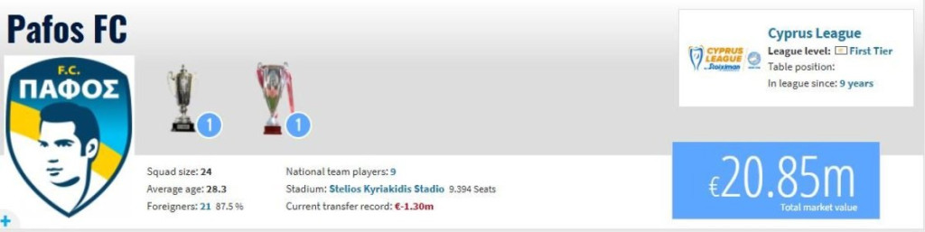 S druge strane, igrački kadar Pafosa procenjen je na 20,85 miliona evra, što je značajno manje u poređenju sa crveno-belima, a razlika se vidi i u individualnim vrednostima fudbalera.